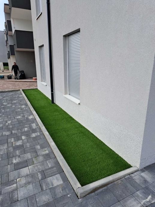 Es besteht aus einem Eingangsflur, zwei Schlafzimmern, einem voll ausgestatteten Badezimmer, einem hellen Wohnzimmer, das mit der Küche und dem Essbereich verbunden ist, sowie einer geräumigen Terrasse mit schönem Blick ins Grüne – perfekt zum Entspannen und Genießen der Ruhe.