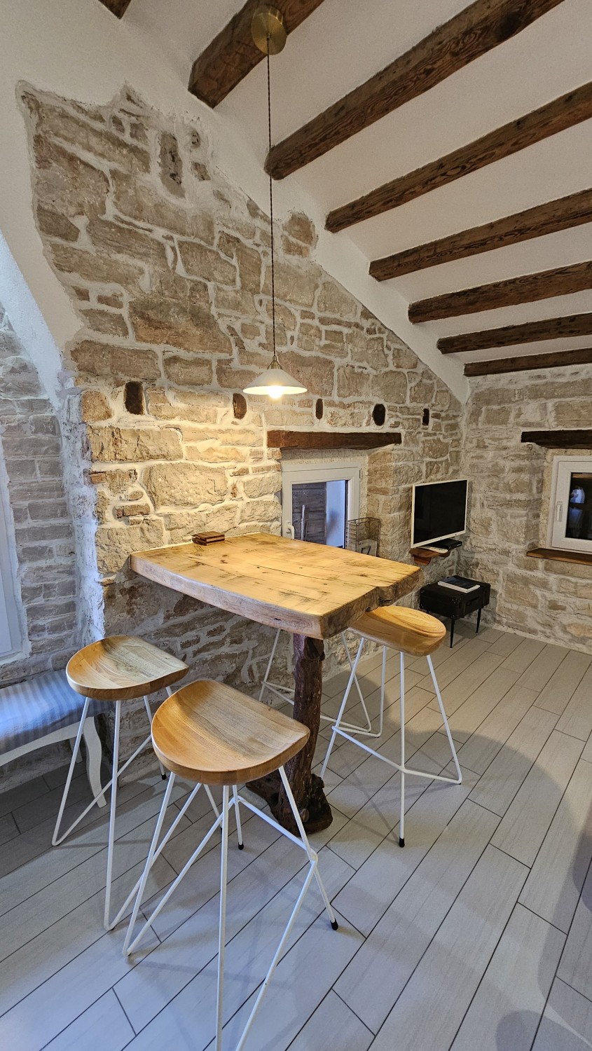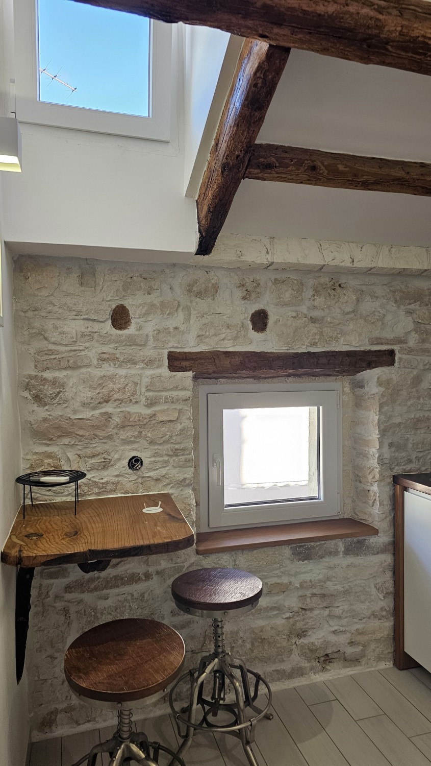 gereinigte Wände (feuchtigkeitsfrei dank der Altstadt von Rovinj), neue Fenster, Türen, Klimaanlage, neue Möbel und alle Haushaltsgeräte.