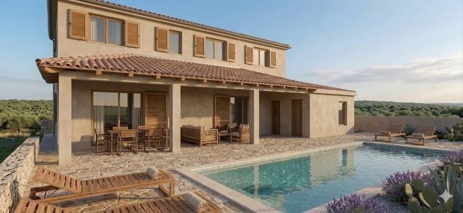 Das Grundstück verfügt über eine rechtskräftige Baugenehmigung für den Bau eines Einfamilienhauses mit Pool, insgesamt 192 m² groß.