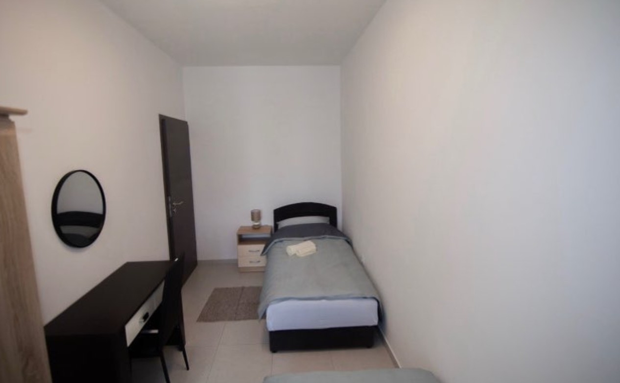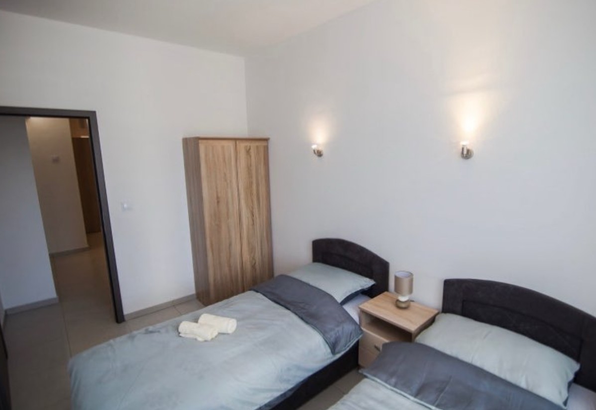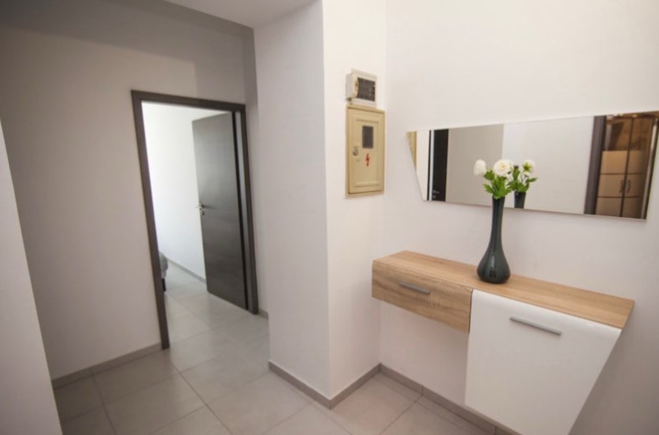 Sie besteht aus einem Flur, drei Schlafzimmern, einer Küche mit Essbereich und einem Wohnzimmer.