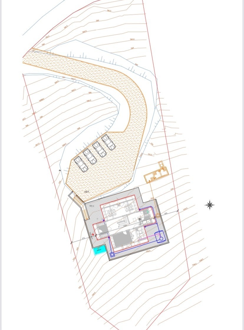 Autarke Infrastruktur: geplante Wasserversorgung über eine Zisterne mit Hydropumpsystem, Klärgrube für Abwasserentsorgung, Möglichkeit für einen Gastank oder Stromgenerator.