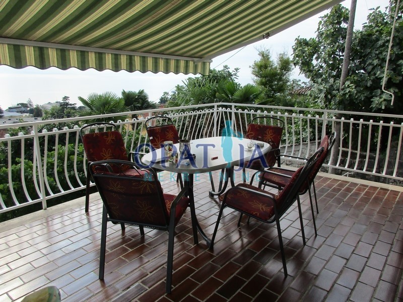 Opatija - Tolles Haus mit Blick auf Meer und Umgebung auf einem Grundstück von 1850 m² zu verkaufen. Neben dem Haus befindet sich auf dem Grundstück ein Nebengebäude von 80 m², eine Sommerküche mit Grill, sowie eine Garage. Das Haus verfügt aktuell über drei separate Stromzähler. Der Garten ist sehr gepflegt und beherbergt viele Palmen, die Schatten spenden.