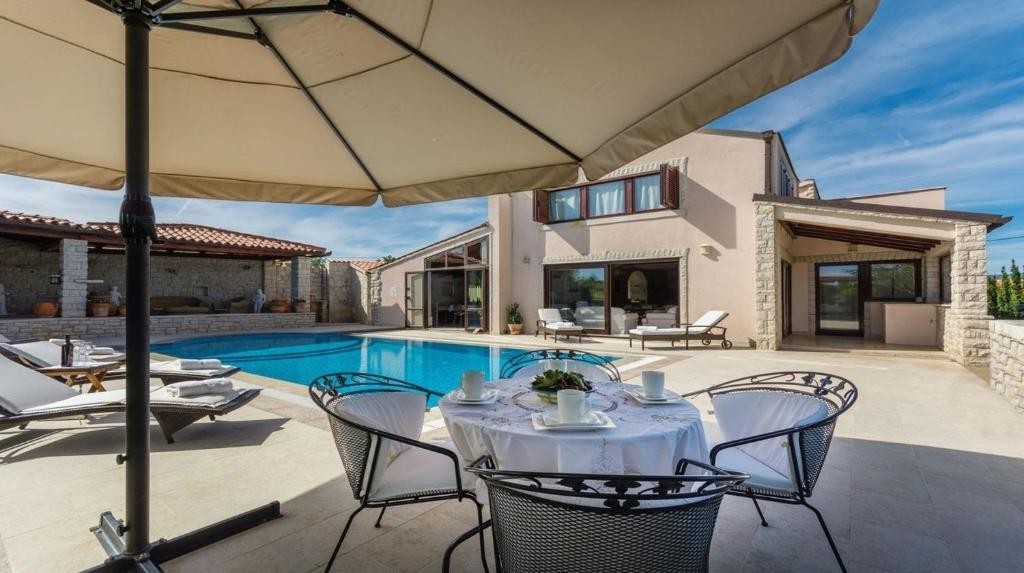 Zum Verkauf steht eine wundervolle Villa in der Nähe von Rakalj mit insgesamt 350 m2 Wohnfläche und 1005 m2 Außenfläche. Die Villa bietet viel Platz und besitzt 4 Schlafzimmer, ein großes Wohnzimmer, eine voll ausgestattete Küche mit Essbereich, 3 Badezimmern sowie einen tollen Außenbereich. Dort gibt es nämlich einen großen Pool, eine Sommerküche für schöne Sommerabende, einen Whirlpool sowie viele Liegen. Die Villa bietet einen schönen Aublick von den Terrassen und Balkonen.