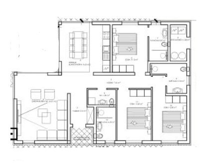 Die Villa mit einer Gesamtfläche von 112,10 m² liegt in unmittelbarer Nähe des Stadtzentrums und besteht aus einem Eingang, Flur, Wohnzimmer, Küche mit Essbereich, 3 Schlafzimmern, 3 Badezimmern und einem Technikraum.