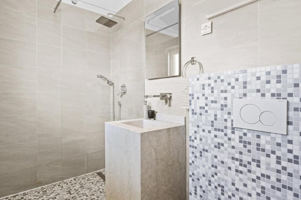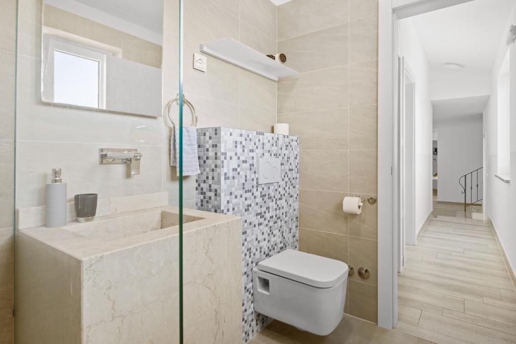 Während Sie den Pool im Hof und den angelegten Garten genießen können, genießen Sie von der obersten Etage aus einen wunderschönen Blick auf das Meer.