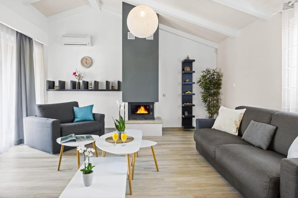 Jede Villa besteht aus vier Schlafzimmern, drei Badezimmern, einer Toilette, einer ausgestatteten Küche mit Essbereich und einem großen Wohnzimmer mit Kamin.