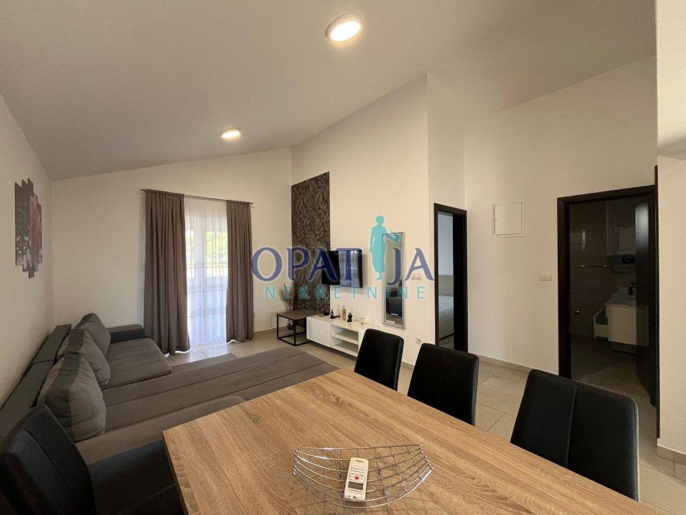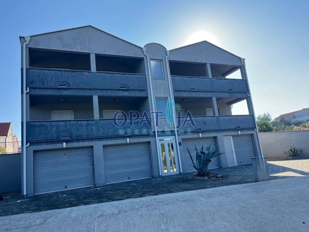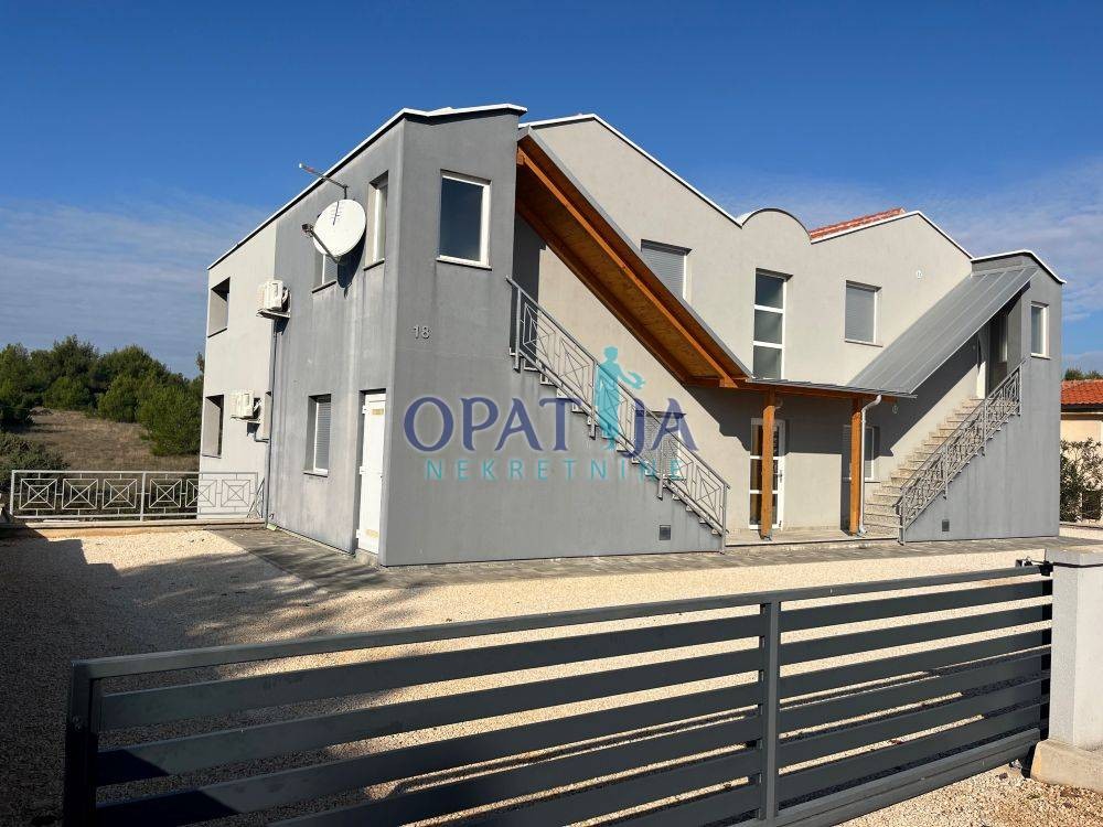 Zum Verkauf steht ein sehr gepflegtes Mehrfamilienhaus auf der Insel Vir, nur etwa 50 Meter vom Meer entfernt. Das Haus wurde 2015 erbaut und befindet sich technisch wie optisch in ausgezeichnetem Zustand. Es umfasst vier vollständig getrennte Apartments, jeweils mit eigenem Eingang, einer großen Terrasse und einer eigenen Garage von jeweils ca. 20 m². Jedes Apartment bietet identische Raumaufteilungen: