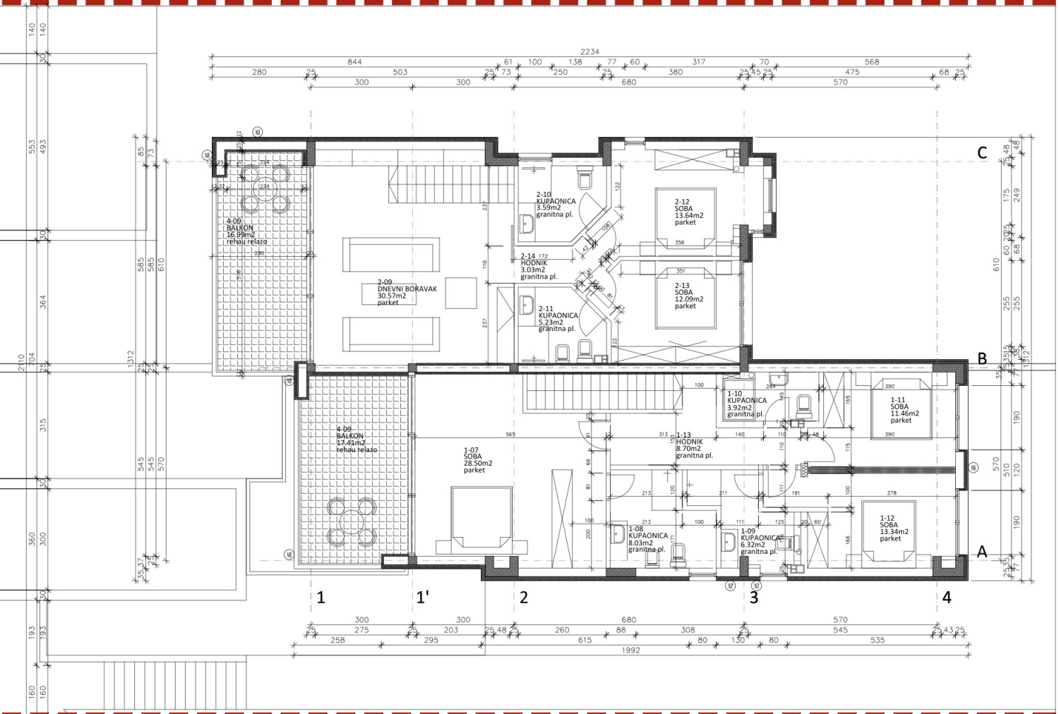 1. OG (68,15 m² + Balkon 16,99 m²)