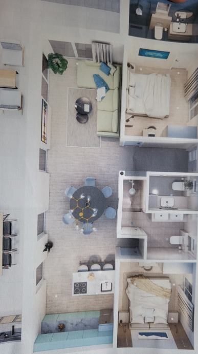 Das Haus besteht aus einem Wohnzimmer, einer Küche mit Esszimmer, 2 Schlafzimmern, 2 Bädern und einer Toilette.