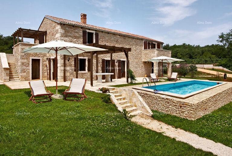 Eine wunderschön dekorierte Steinvilla zum Verkauf im Inneren Istriens, 2,5 km von einer kleinen istrischen Stadt entfernt, mit allen Einrichtungen, die für ein komfortables Leben erforderlich sind. Das Haus zeichnet sich durch außergewöhnliches Design aus, das von einem der führenden kroatischen Designer signiert und mit hochwertigen Designermöbeln renommierter kroatischer und italienischer Hersteller ausgestattet wurde. Die Villa wurde 2016 erbaut und verfügt über insgesamt 188 m2 + 930 m2 Garten. Es besteht aus einem Erdgeschoss mit einer Eingangshalle, einem Wohnzimmer mit Essbereich, das auf eine überdachte Terrasse führt, einer Küche, einer Gästetoilette und einem Schlafzimmer mit Bad. Im Obergeschoss befinden sich drei Schlafzimmer mit jeweils eigenem Bad. Das Wohnzimmer und die Schlafzimmer sind klimatisiert und das Wohnzimmer verfügt über einen Kamin. Im sorgfältig angelegten Garten gibt es einen 33 m2 großen Swimmingpool mit breiten Treppen für einfachen Zugang zum Wasser, eine geräumige überdachte Terrasse mit Sitzgelegenheiten und Sommerküche, Außendusche und zwei Parkplätze. Das Haus wird komplett ausgestattet verkauft.