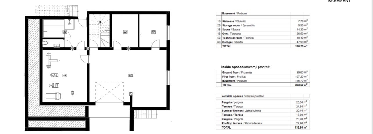 Fitnessraum (26,50 m²), Sauna (14,30 m²) und große Garage (47,90 m²)