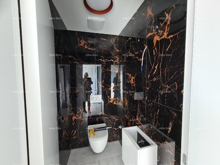 In Fazana in Strandnähe verkaufen wir eine schöne Wohnung von 112m2 mit einem großen Wohnzimmer mit Küche und Esszimmer mit Zugang zu einer großen, überdachten Terrasse mit Blick auf das Meer und den Strand, 2 Schlafzimmer, jedes mit eigenem Bad + separatem WC. Vom Schlafzimmer Ausgang zur großen Terrasse, vom anderen Zimmer Ausgang zur kleinen Terrasse.