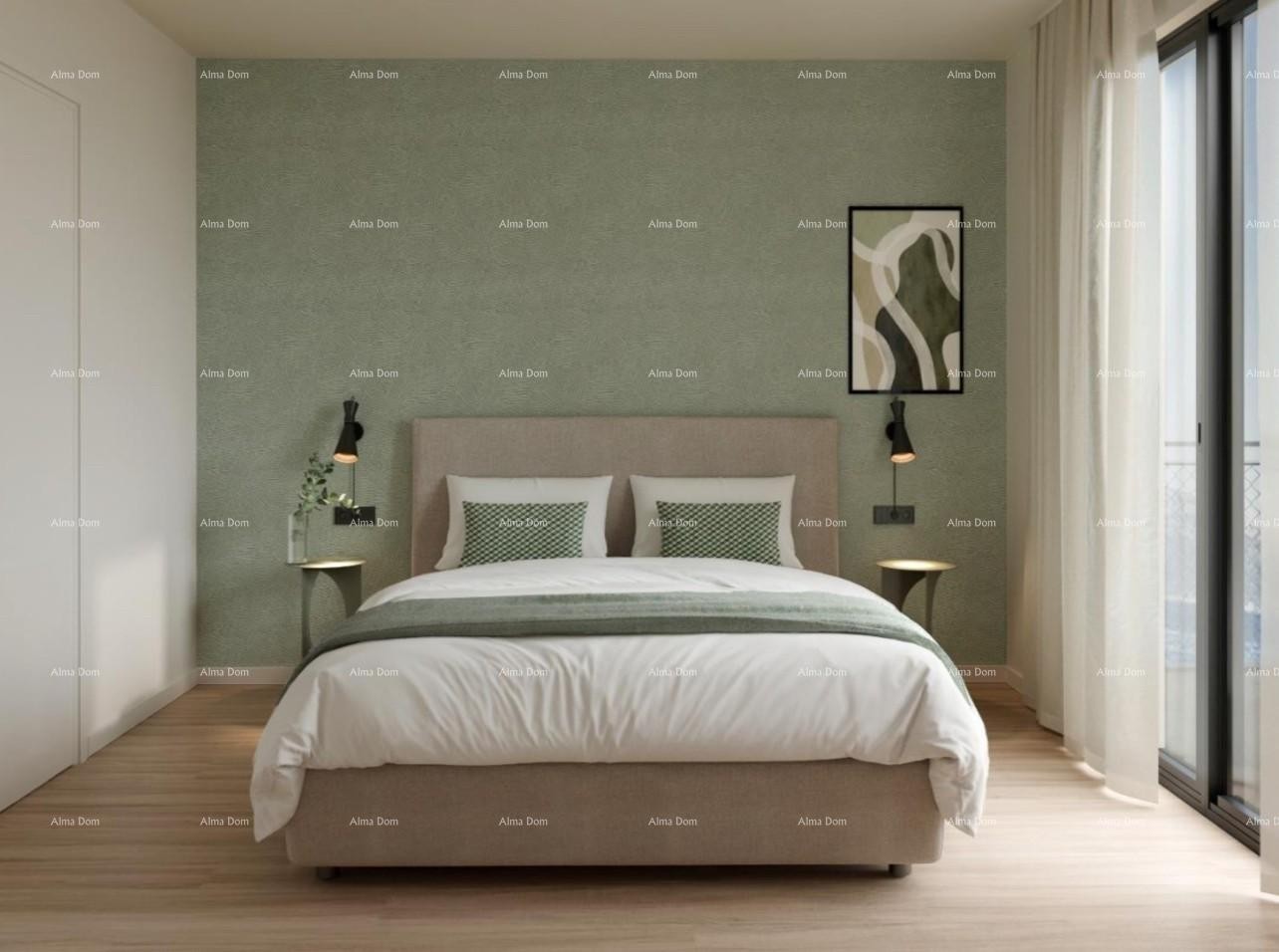 Die Wohnung wird Fußbodenheizung haben, klimatisiert sein, 2 private Parkplätze und einen Abstellraum bieten.