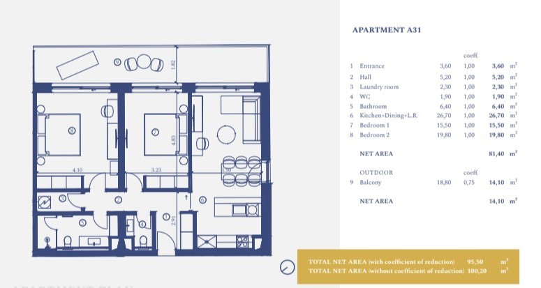 Wohnung A-31 (100,2 m2) befindet sich im 2. Stock: