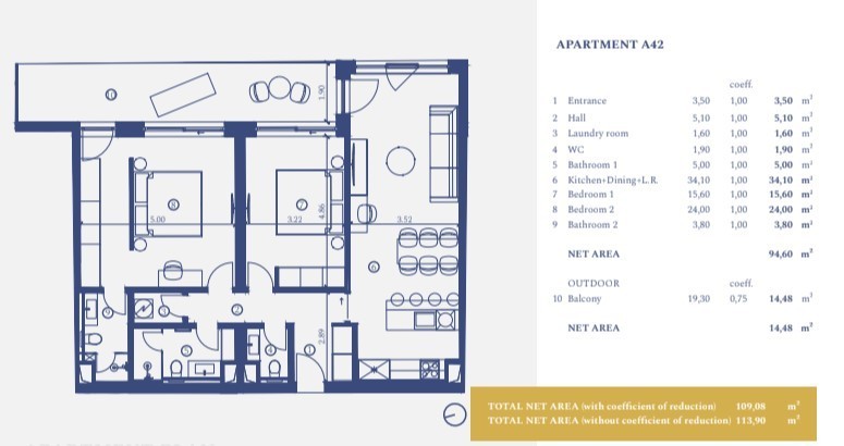 Die Wohnung A-42 (113,90 m2) befindet sich im 3. Stock:
