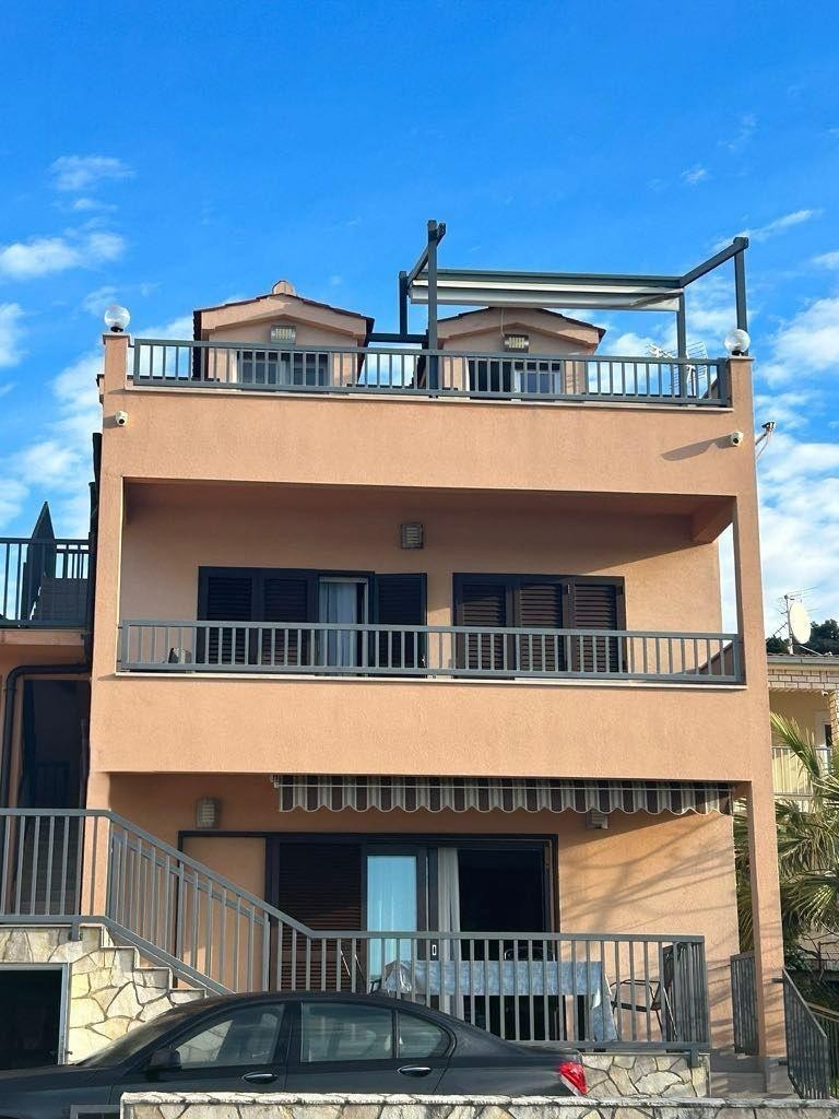Zum Verkauf steht ein wunderschönes, komplett eingerichtetes und möbliertes Haus mit einer Fläche von ca. 400 m², gelegen in einer ruhigen und attraktiven Lage, nur wenige Schritte vom Meer entfernt. Das Haus erstreckt sich über drei Etagen plus ein Studio-Apartment, wobei jeder Wohnbereich einen eigenen separaten Eingang hat, was es perfekt für ein angenehmes Familienleben oder als hervorragende Investition für touristische Vermietung macht.