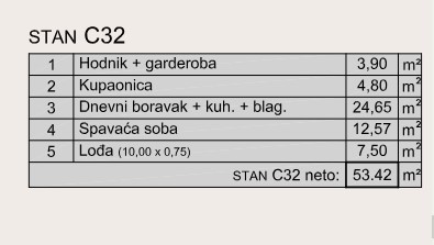 Die Wohnung hat eine Fläche von 53,42 m²