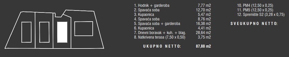 Die Wohnung C3 mit einer Fläche von 87,88 m² befindet sich im 1. Stock des Gebäudes C mit 3 Etagen.
