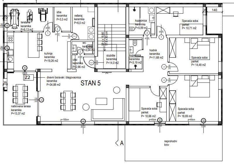 Die Vierzimmerwohnung S5 befindet sich im 2. Stock eines Gebäudes mit insgesamt 5 Wohnungen, sie ist die einzige auf der Etage, hat eine Wohnfläche von 166,04 m2 und besteht aus folgenden Räumen: