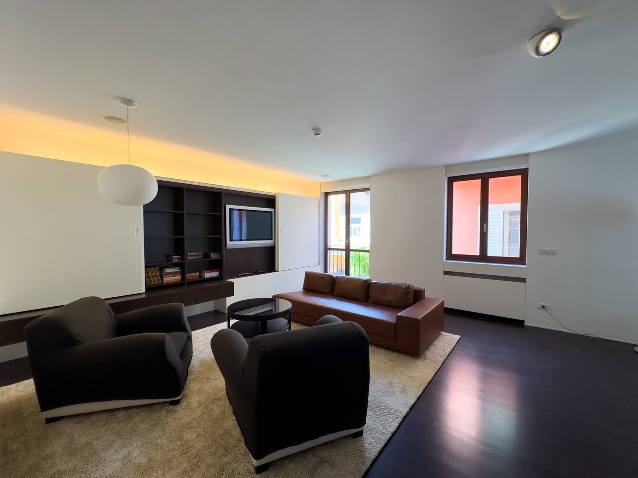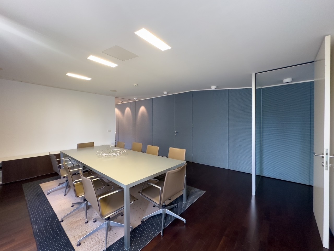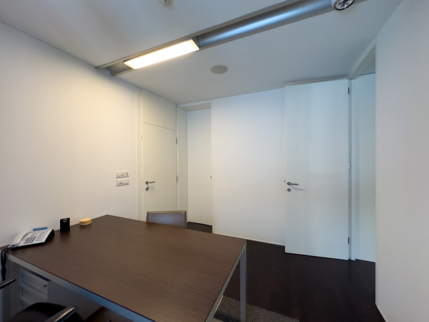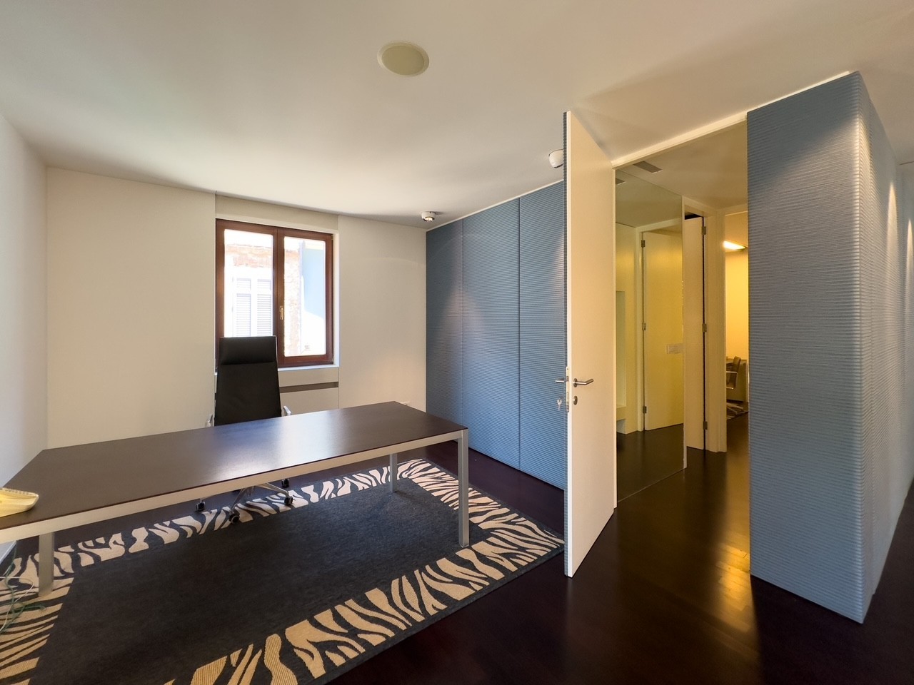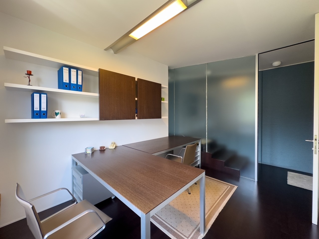 Die beiden Wohnungen sind zu einer großen Bürofläche verbunden, die komplett ausgestattet ist und als solche verkauft wird.