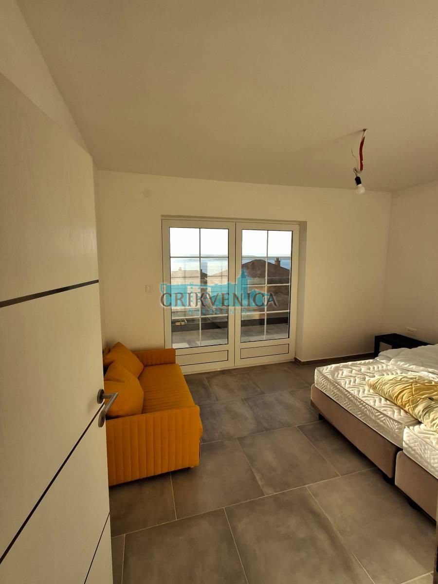 Die Wohnung besteht aus einem Flur, zwei Schlafzimmern, Küche, Wohnzimmer, Bad, Loggia und einem überdachten Balkon mit Panoramablick auf das Meer.