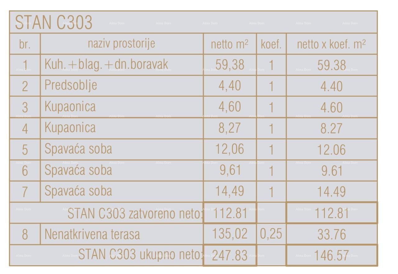 Die Wohnung C303 befindet sich im 3. Stock der zentralen Einheit des Gebäudes und besteht aus: