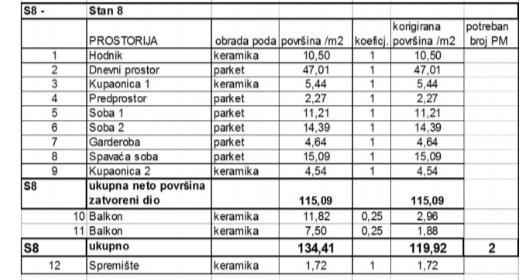 Apartment S8, im 1. Stock des Gebäudes gelegen, Fläche 121,64 m2.