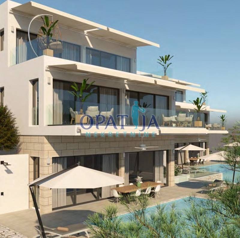 Die moderne Architektur verbindet mediterranen Stil mit klaren Linien und großen Glasfronten, die den Blick auf das Meer optimal zur Geltung bringen.