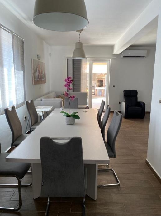 Das Haus ist technisch mit einem Alarmsystem, Videoüberwachung und einer Satellitenschüssel ausgestattet. Der Außenbereich bietet alles, was man zum Entspannen benötigt – einen Pool mit den Abmessungen 7 x 4 m mit römischem Eingang (insgesamt 32 m²), einen gepflegten Garten, eine komplett ausgestattete Außenküche mit Grill, einen überdachten Sitzbereich sowie eine zusätzliche Außentoilette. Das gesamte Grundstück ist eingezäunt und bietet Privatsphäre sowie einen gepflegten Bereich zum Entspannen oder geselligen Beisammensein.