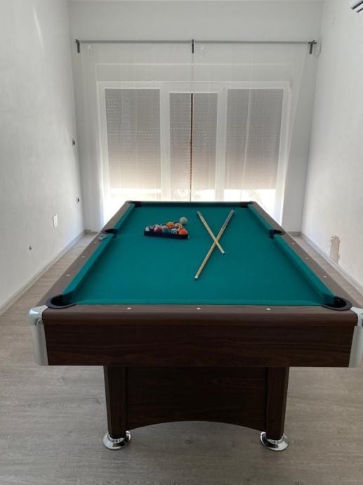 Im Erdgeschoss befinden sich eine Küche, ein Esszimmer, ein Wohnzimmer, ein Schlafzimmer, ein Badezimmer und ein separater Raum, der eine Waschküche und einen Unterhaltungsbereich mit einem Billardtisch umfasst. Im Obergeschoss gibt es drei Schlafzimmer, von denen eines Zugang zu einer eigenen Terrasse hat, sowie ein zusätzliches Badezimmer. Jedes Zimmer ist mit einer Klimaanlage und einem Fernseher ausgestattet, was Komfort und Privatsphäre gewährleistet.