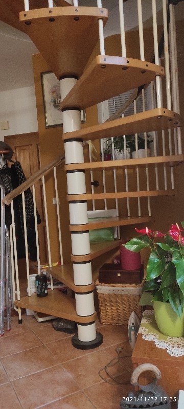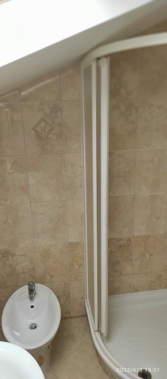 Die Wohnung befindet sich im 2. Stock und ist zweigeschossig. Im unteren Geschoss gibt es einen Eingangsflur, ein WC, einen Abstellraum, eine Küche mit Wohnzimmer und Essbereich sowie eine Terrasse. Innentreppen führen in die obere Etage, wo sich zwei Schlafzimmer, ein Badezimmer und ein kleiner Vorraum befinden.
