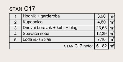Apartment C17, with an area of 51.82 m2, is located in building C.
