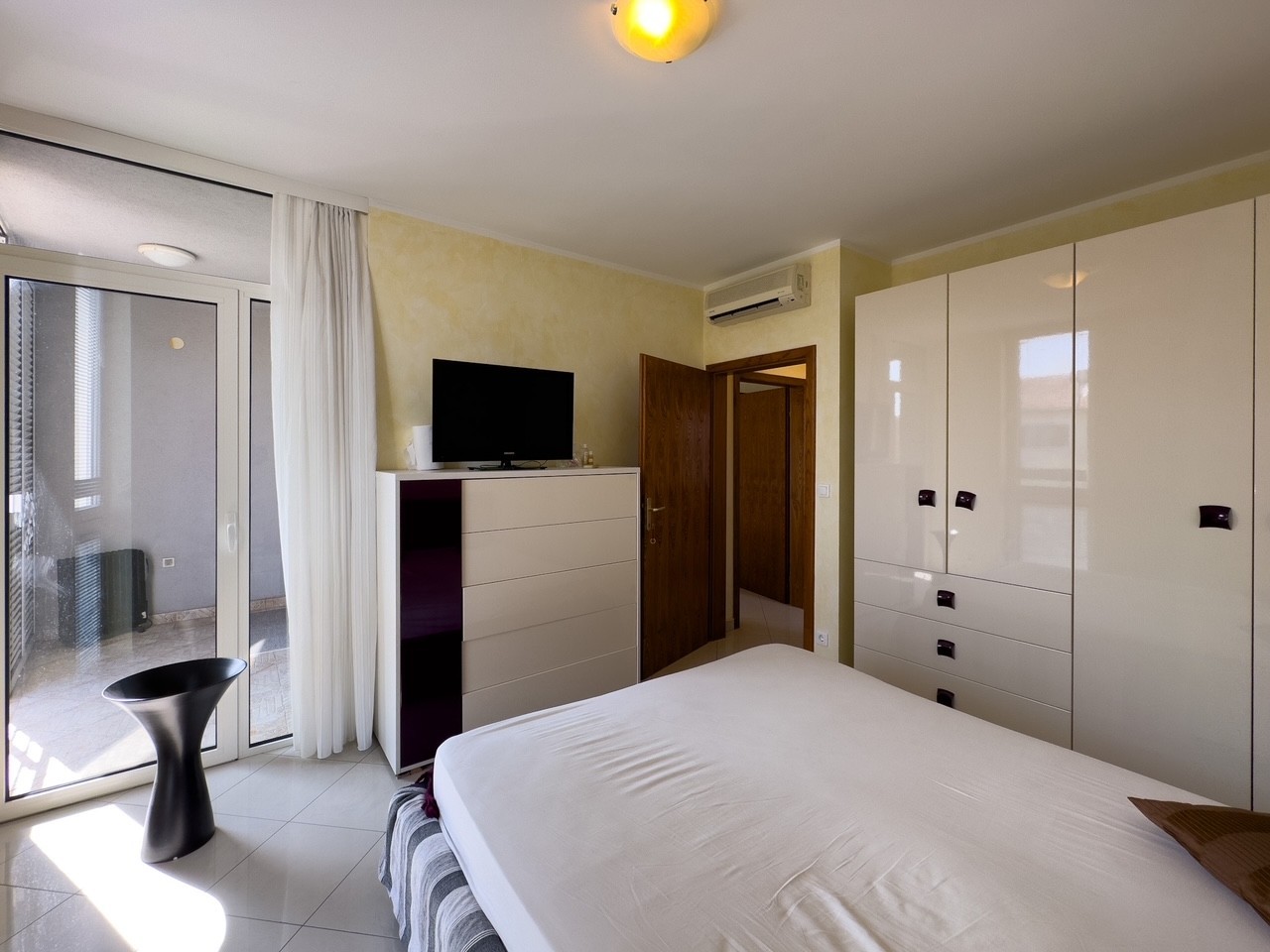 Both bedrooms and the living room have their own air conditioners.