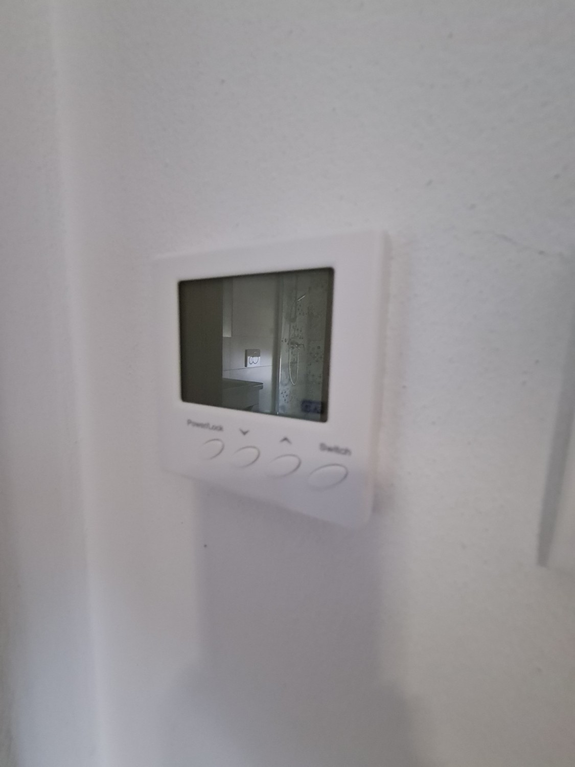 It features air conditioning for heating/cooling and underfloor electric heating in the bathroom.