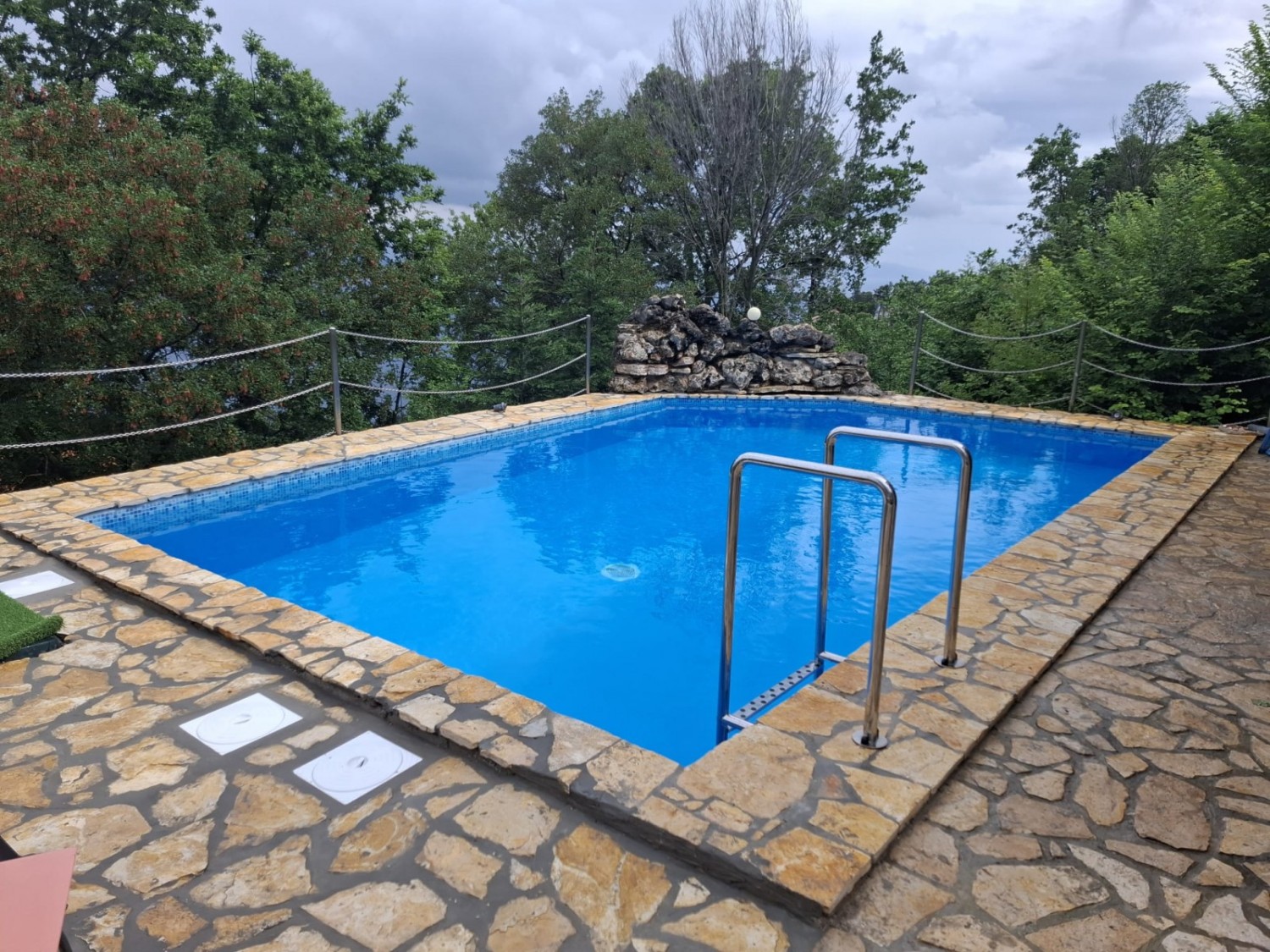 The pool is currently under construction, and the price is for the finished pool. The dimensions of the pool are 8x4 m.