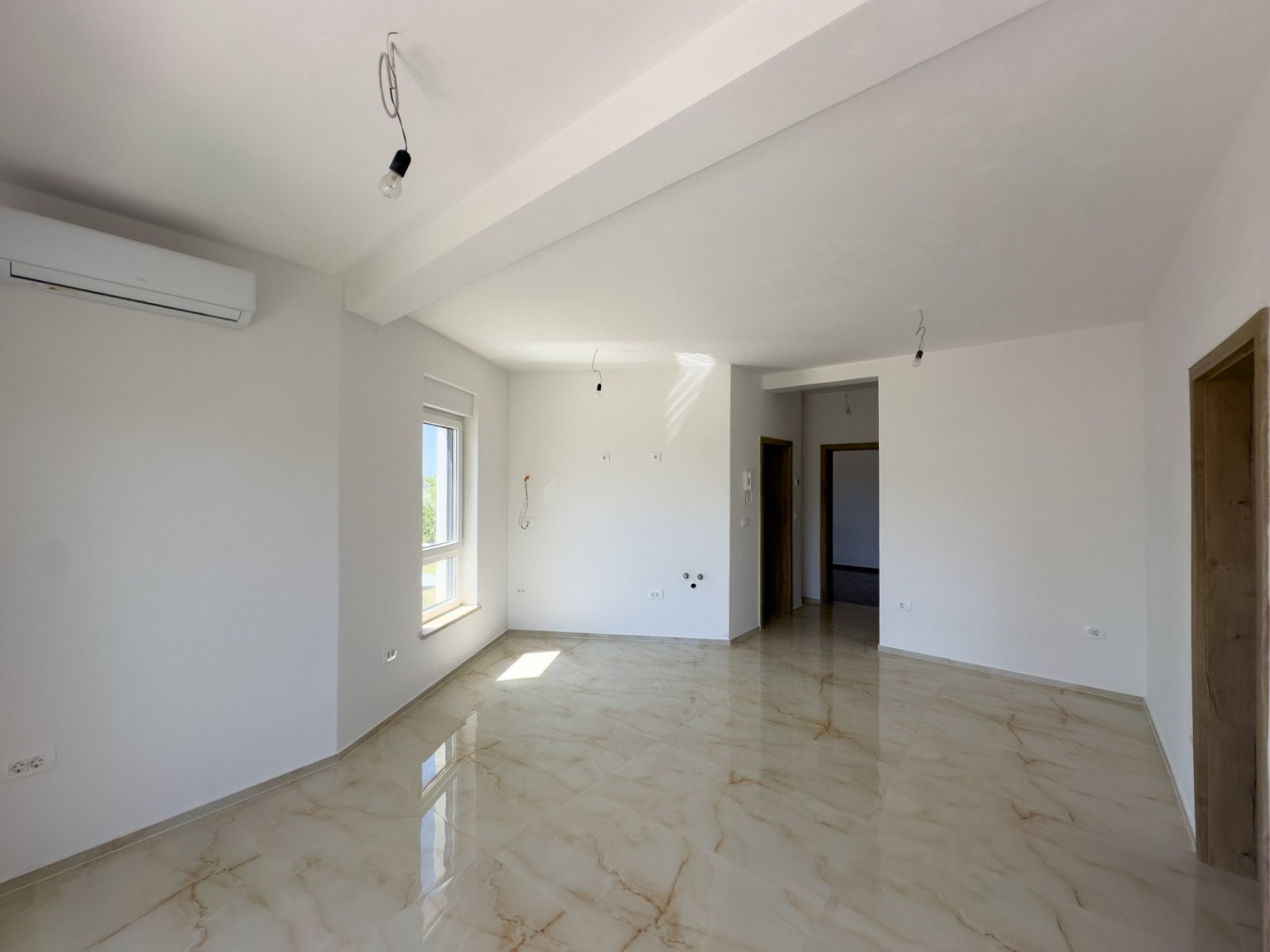 This modernly decorated apartment in Medulin is a perfect opportunity for living or vacationing. Located on the first floor, it offers 55 m² of comfortable space with two bedrooms, a living room, and a kitchen. Just 400 meters from the center and 800 meters from the beautiful sea, you will enjoy proximity to all amenities. The apartment is equipped with an electric heating system, air conditioning, and security doors, and parking is provided. Built in 2024, it combines modern design and practicality, making it ideal for living in this picturesque part of Istria.