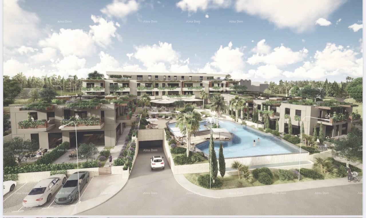 The residential-business building is divided into three units, the central, southern and northern volumes. It will have a total of 78 apartments and 18 business units. The building has a swimming pool and an underground garage.