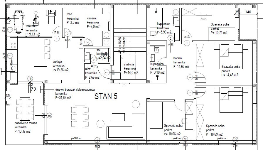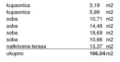 Apartment A5, 166.04 m2, is located on the second floor of the building and consists of the following rooms: