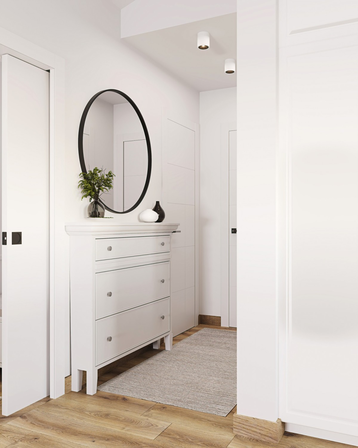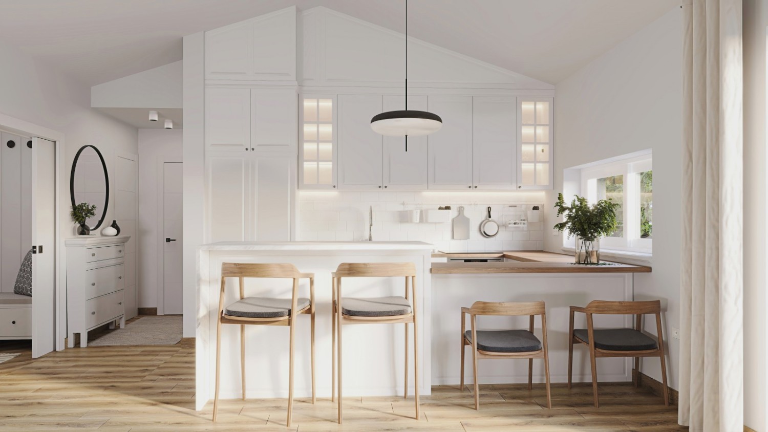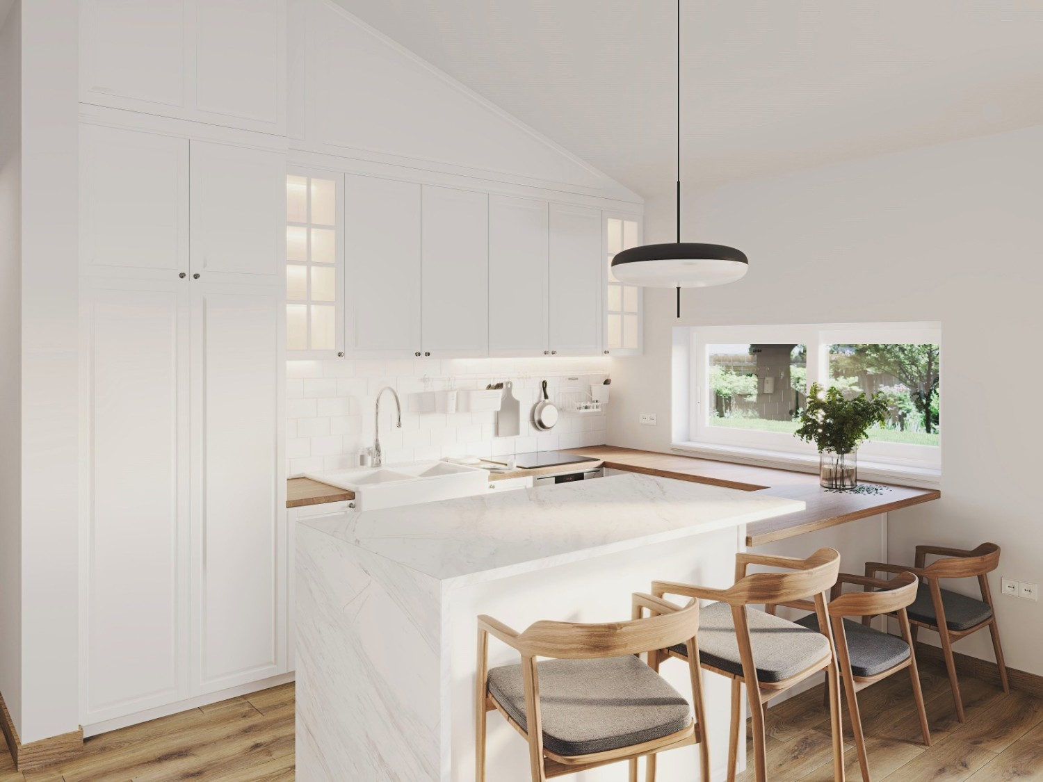 Floors made of Italian ceramic tiles, custom-made interior woodwork.
