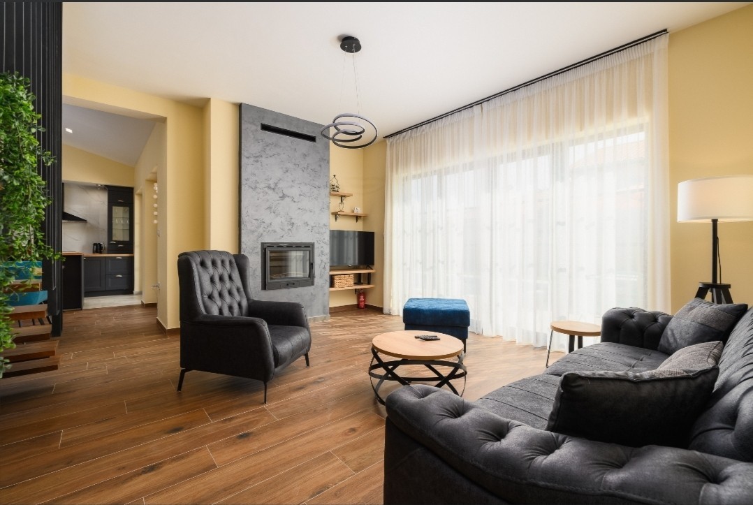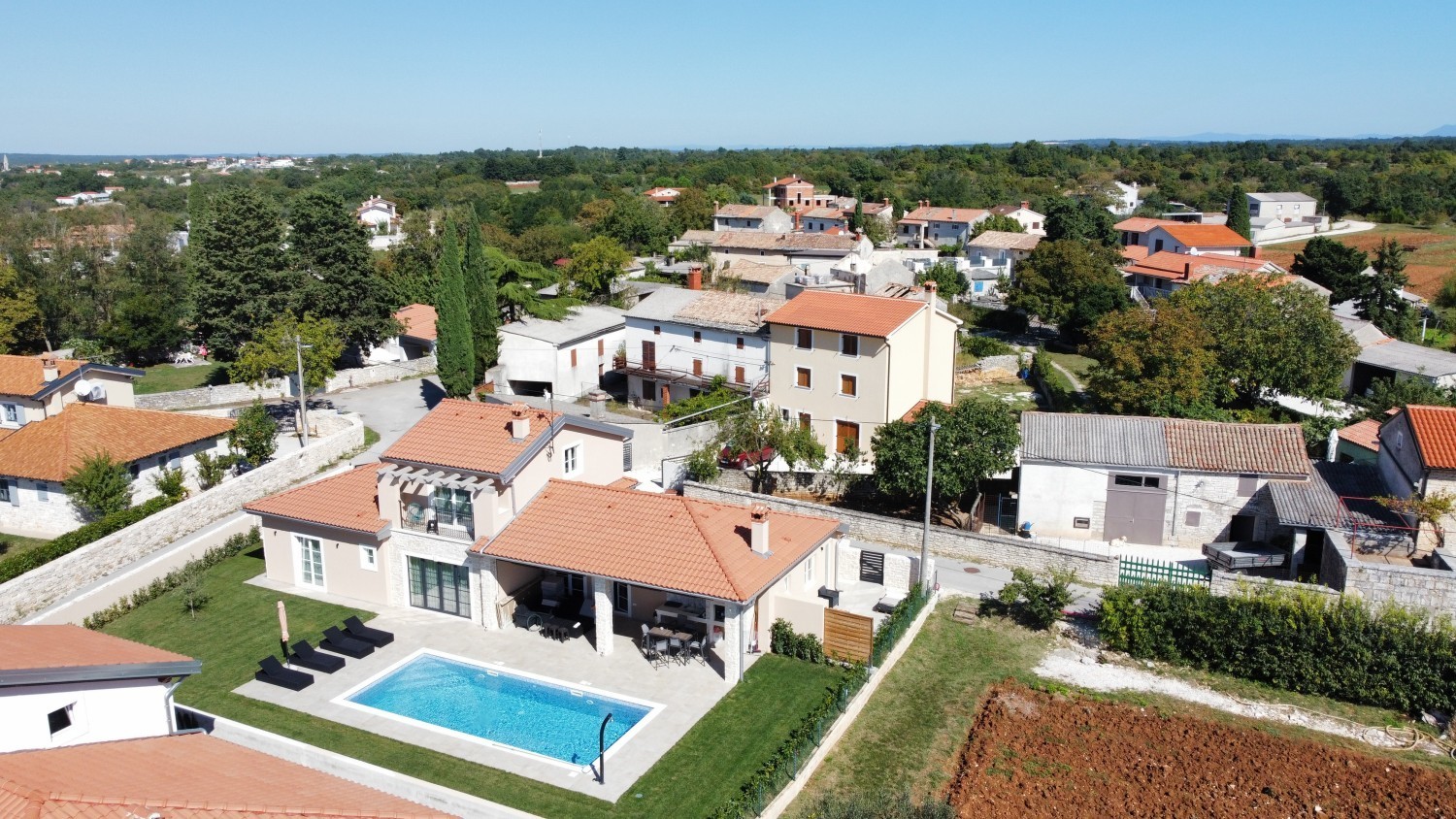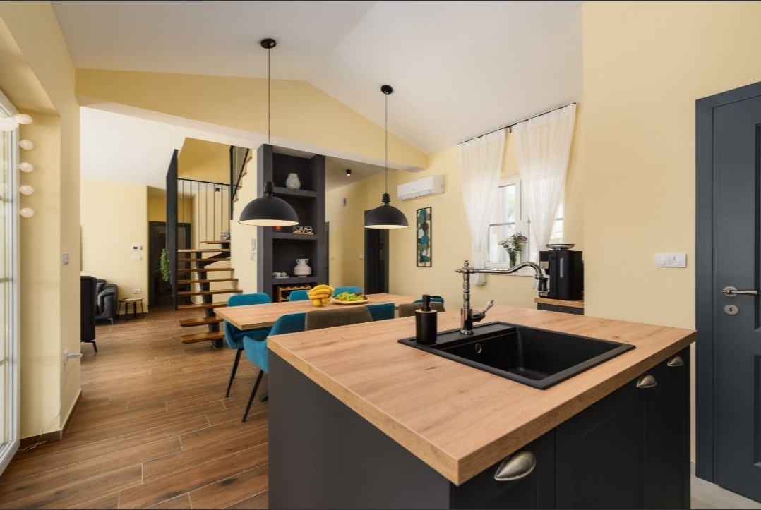 Not far from the most desirable town and tourist pearl Rovinj, there is a beautiful family house with a swimming pool. Located in a small place that attracts with its climate, position and very peaceful way of life, which is ideal for a family lifestyle. A spacious interior and perfect communication between the rooms with a beautiful, warm and pleasant decoration adorns that house and gives it a soul that will make you feel at first that this is exactly what you are looking for. The house covers 188 m² on the ground floor and first floor, the timeless architecture of the house is something that will almost always be "in fashion". The ground floor consists of 2 bedrooms, each with its own bathroom, and a large open space that perfectly connects the living room, kitchen and dining room, each of which has direct access to the covered part of the terrace and the heated pool of 38 m². In the garden there is a covered fireplace, a dining table and a studio with a separate entrance, a bathroom and a small garden that can be used as accommodation for babysitters or as an auxiliary facility, a gym, a sauna... The 1st floor of the house is reserved for the master bedroom, with a large, spacious bathroom that you probably dream of, from the room there is a terrace with a view of the sea in the distance, which is an ideal place to enjoy the sunset. The house is fully equipped with underfloor heating, a heat pump, and each room has the option of adjusting the temperature depending on your wishes and feeling of comfort. This house is a true example of a property where attention was paid to the details of the construction, as evidenced by the 10 cm wall insulation, 25 cm stone wool ventilated roof, triple pane windows and security doors. Ownership is properly 1/1, and a use permit has also been obtained. A property worth noting, so don't miss out and act today!