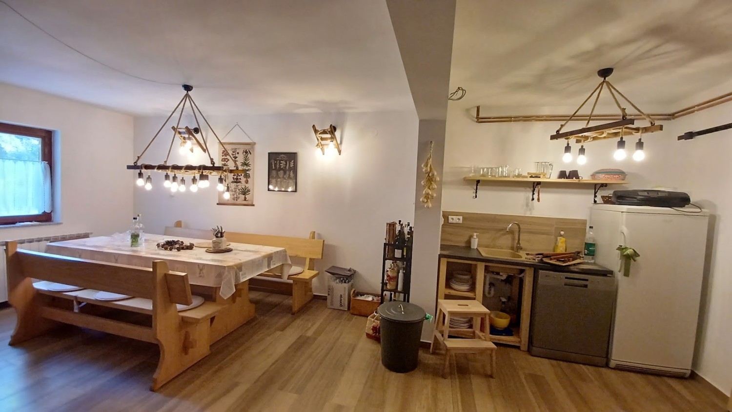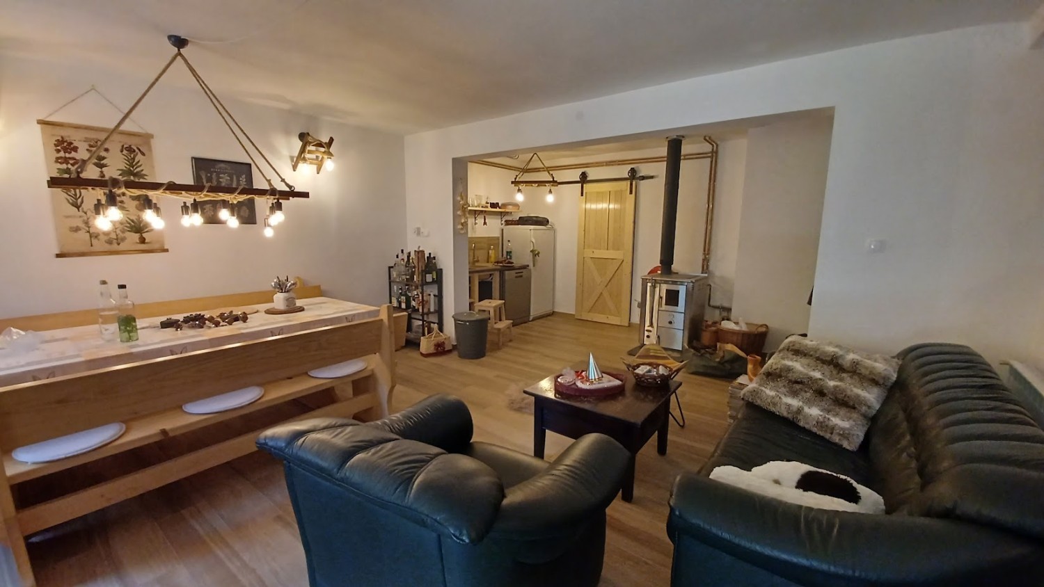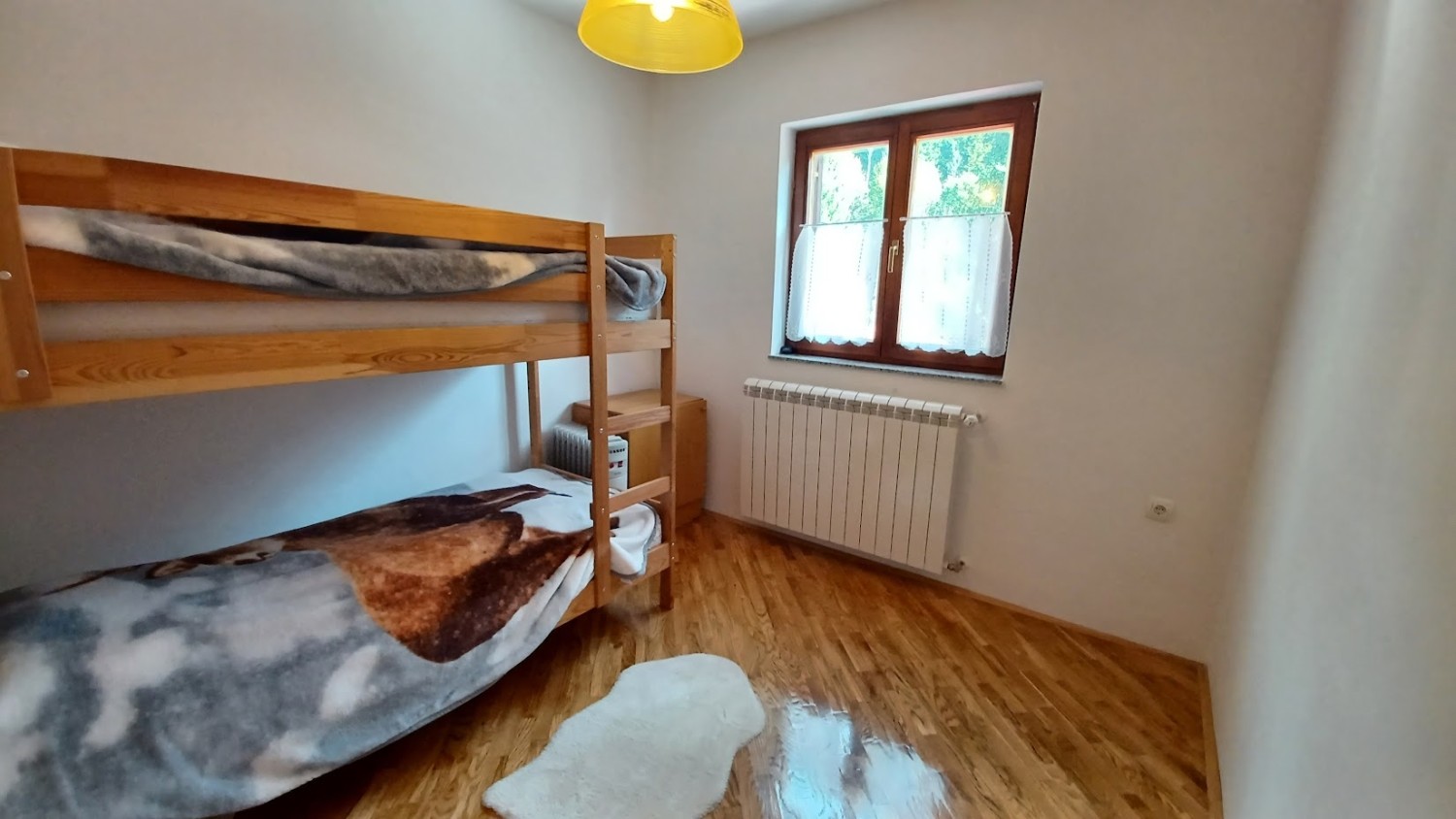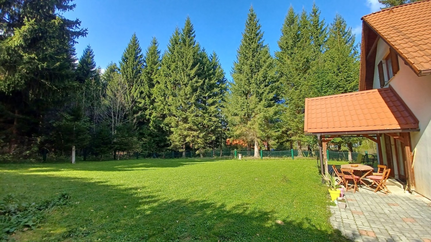 The holiday home is surrounded by mountain junipers, fresh, crisp air, and is located in the Jasenak weekend settlement between Jasenačka kosa and Bjelolasica, at an altitude of 660 meters above sea level. The access road is asphalted and regularly cleaned and maintained in winter conditions. The house has direct access from the road to a fenced, private parking area where four vehicles can park.