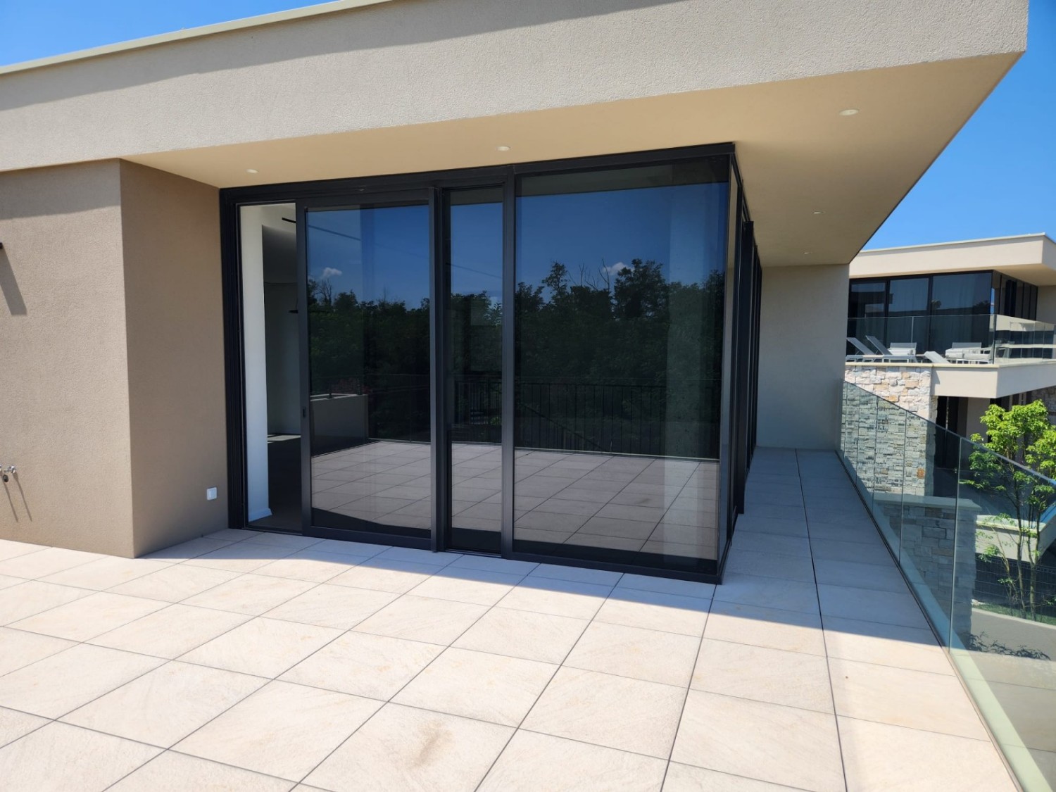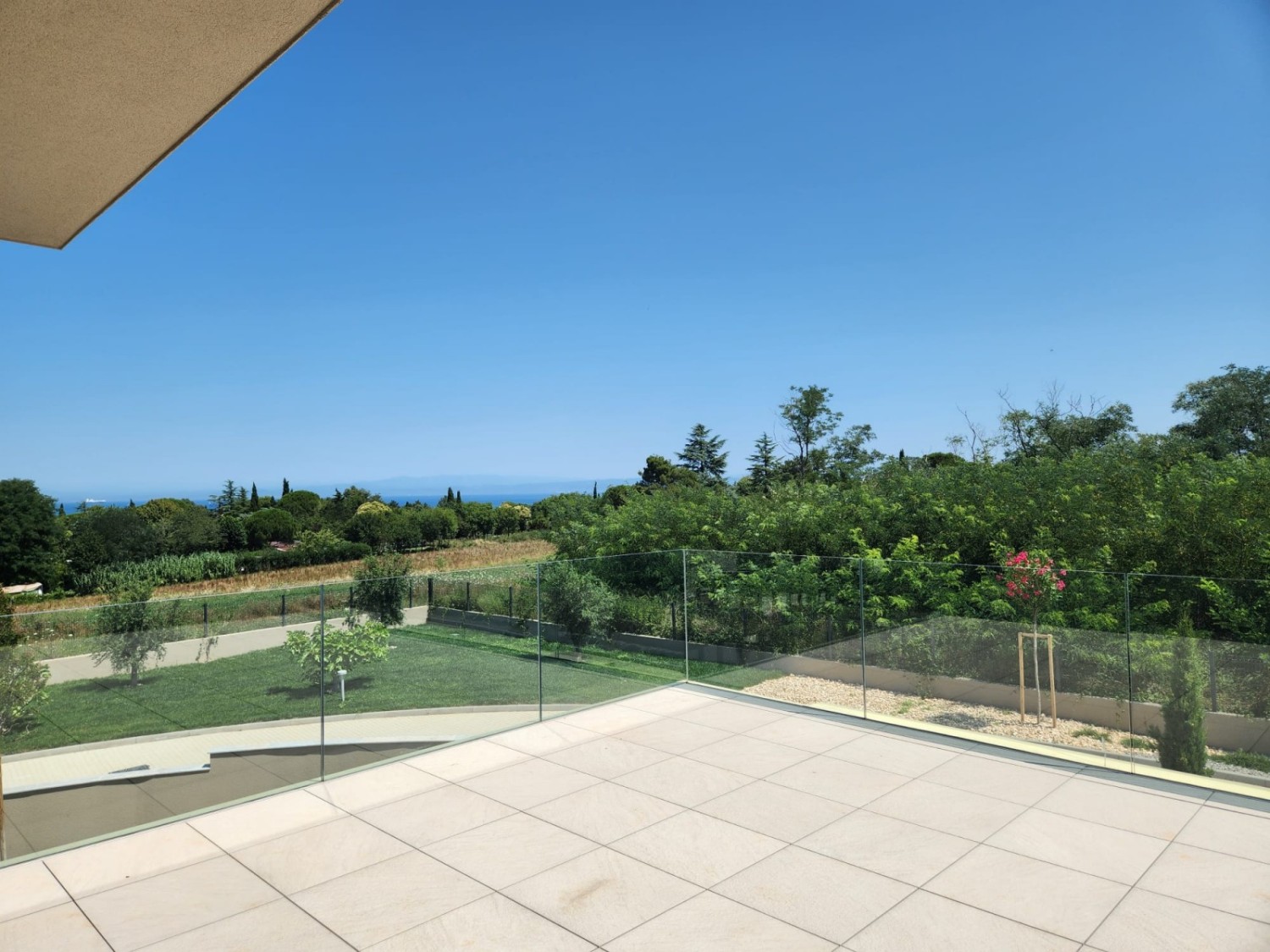 This new construction features a spacious yard of 500 m², providing the perfect place for family and relaxation close to all the amenities Umag has to offer. Large glass walls allow for plenty of light and a sea view!