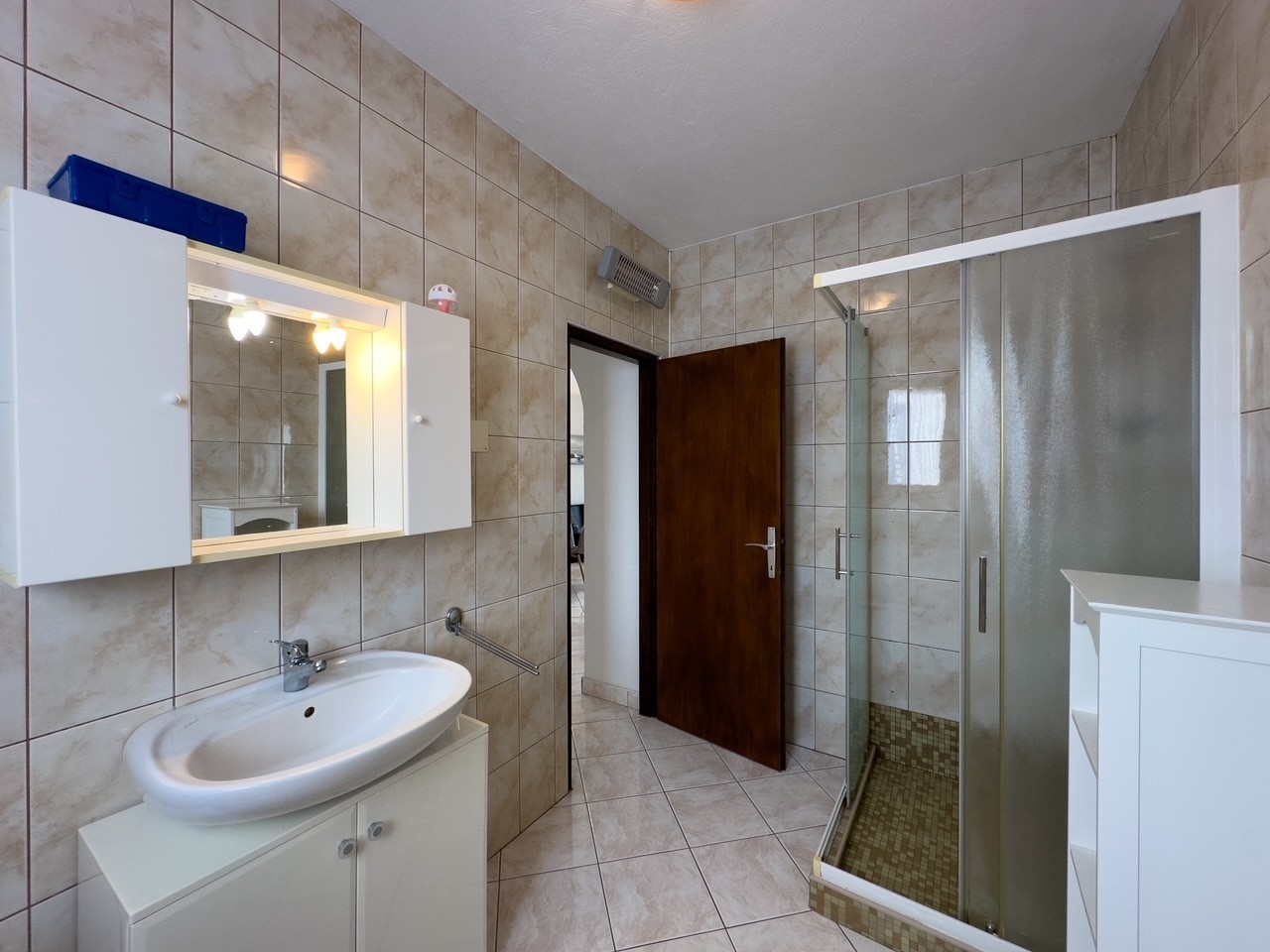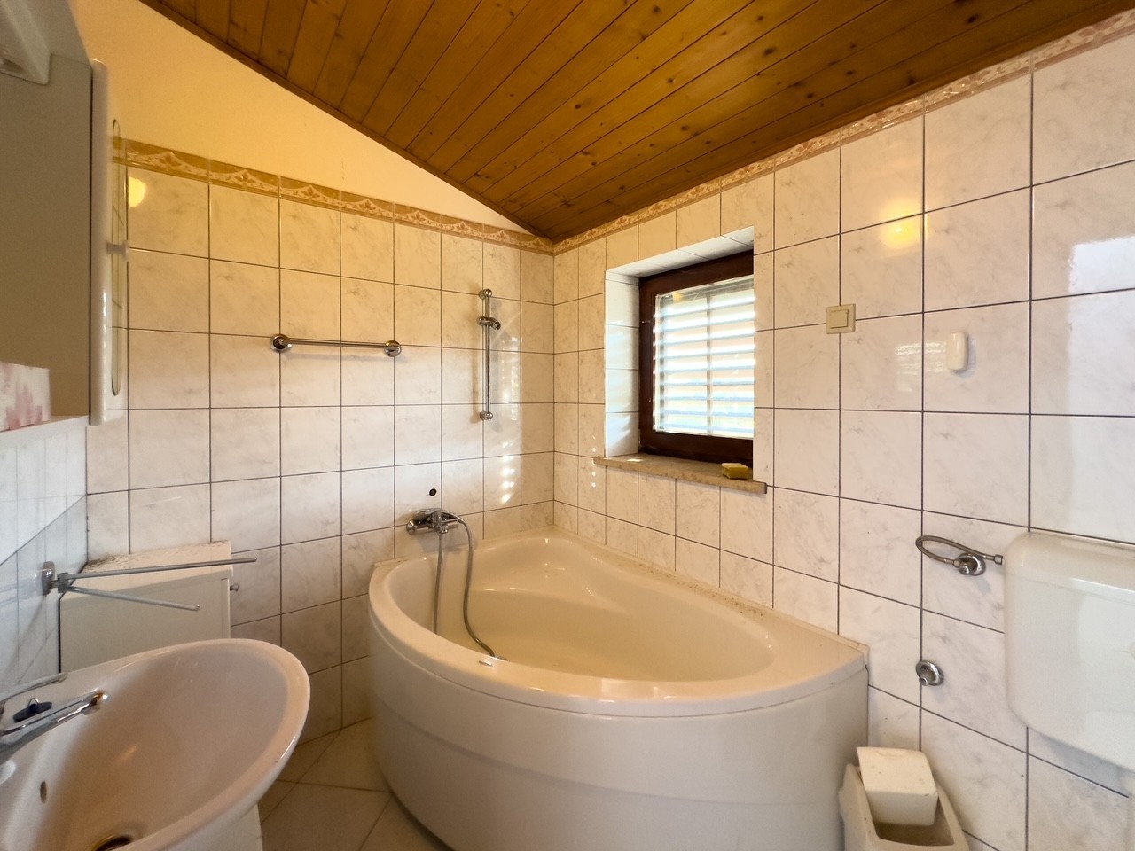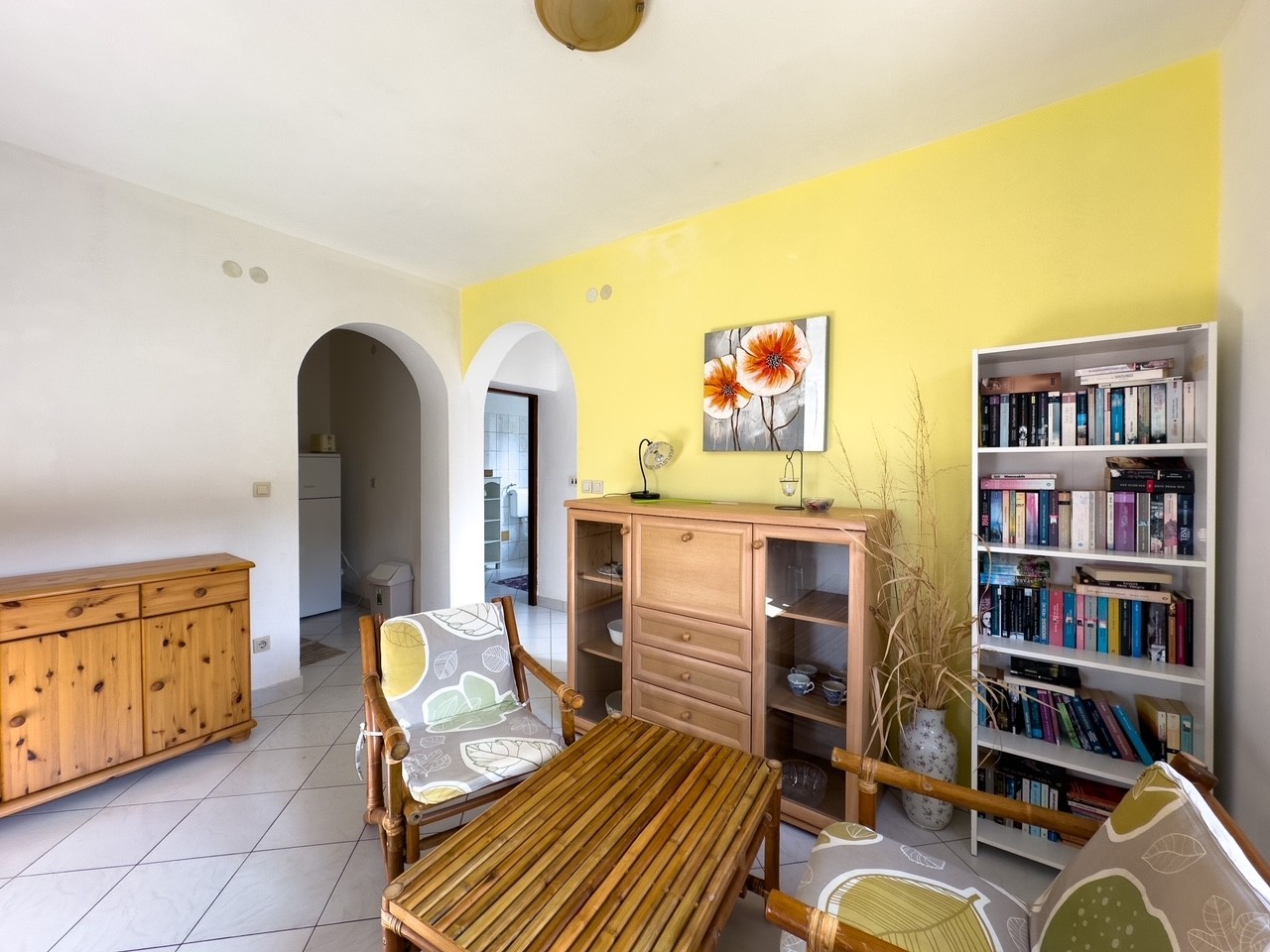 The garden is spacious and well-maintained, featuring a swimming pool, a large brick barbecue, five parking spaces, and a garage with a rooftop terrace where additional construction is possible.