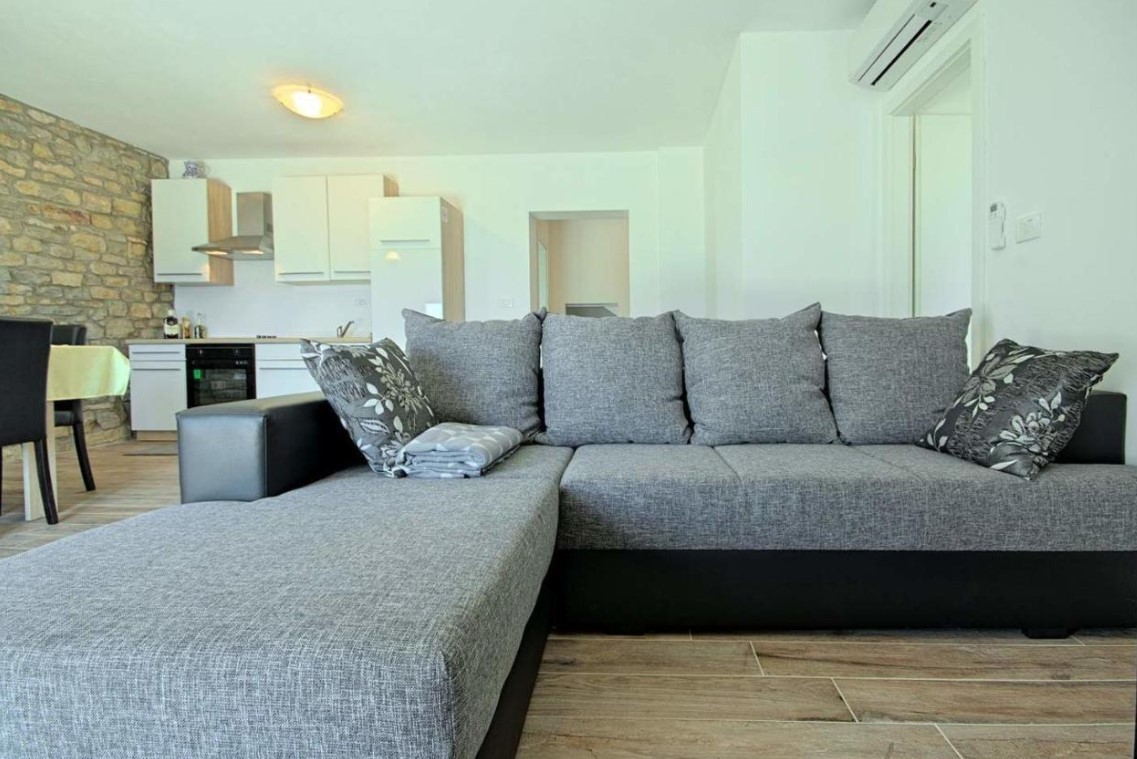 The house, 286 m2, consists of three floors, while each floor can be a separate residential unit. The ground floor and attic are in rough condition, while the 1st floor was completely renovated in 2016. It consists of a large terrace of approx. 30 m2 with a panoramic view of the sea, two bedrooms, an open space living room and dining room, a bathroom with WC and pantry.