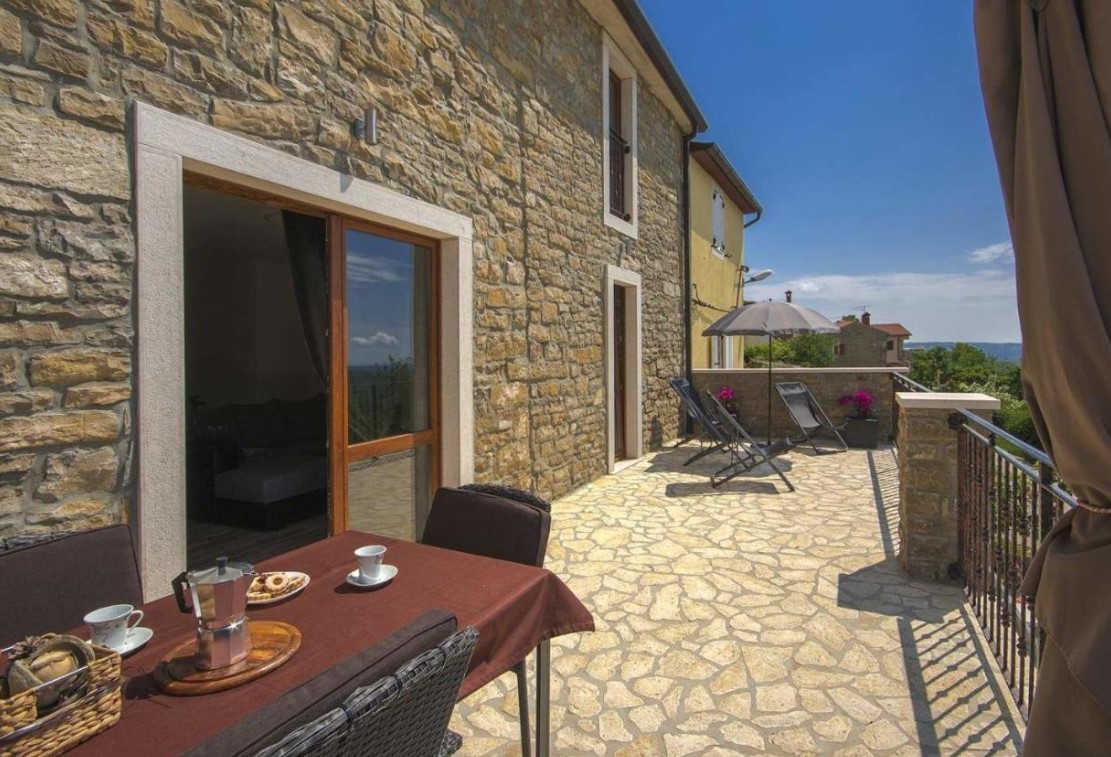 Stone house in a row with sea view for sale, Buje. The house is from 1800, and was renovated in 2016, where completely new installations, facade, roof and roofing were made.