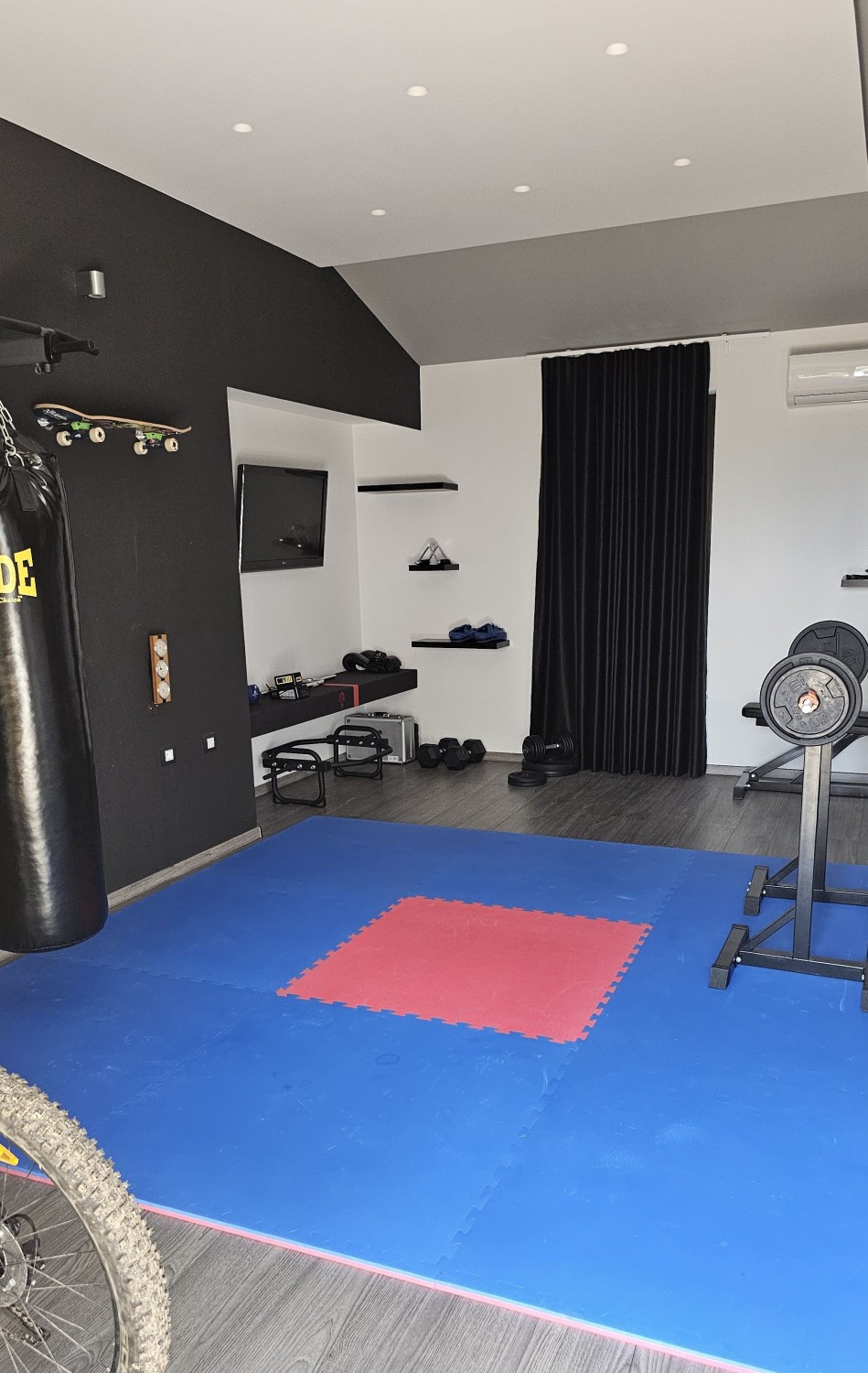 lOn the ground floor there is a separate room with its own entrance which is currently equipped as a fitness room and can be converted into a
