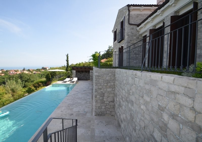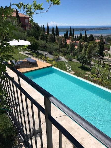 We are selling a luxury villa with an unobstructed view of the entire Piran Bay, salt pans, and the sea all the way to Italy. It is designed as a master villa combined with a guest house featuring a wine cellar, a large outdoor infinity pool, and spa rooms for pampering.
