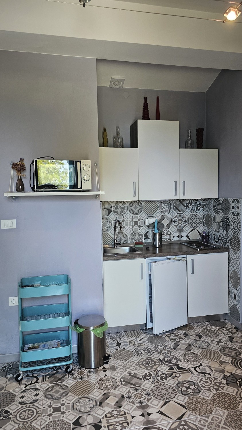 Can be converted into an apartment or studio apartment with a tavern. In front of a large covered terrace.