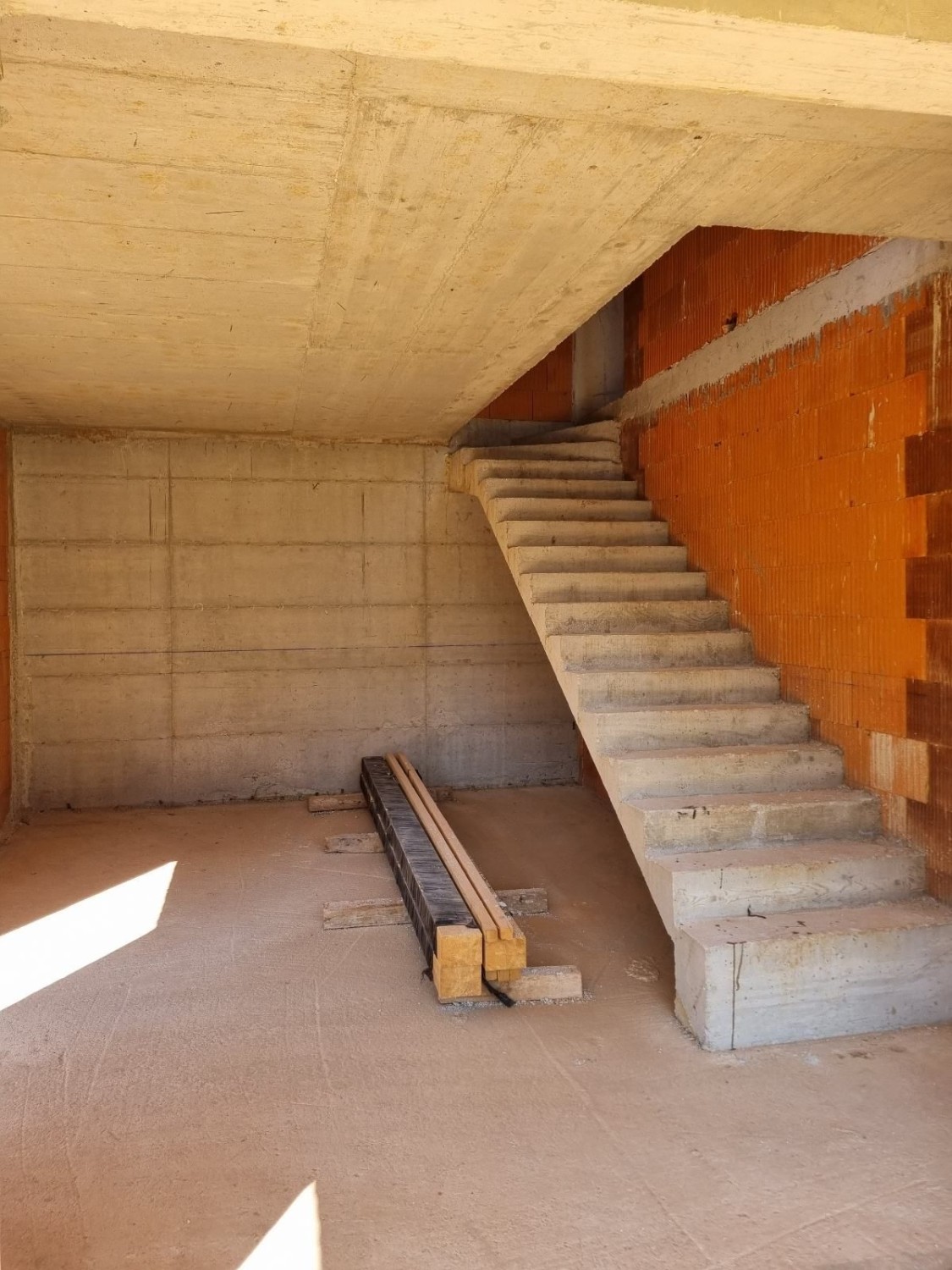The house is two-storey, the ground floor consists of a living room, kitchen, utility room, technical room, bathroom and a covered terrace.