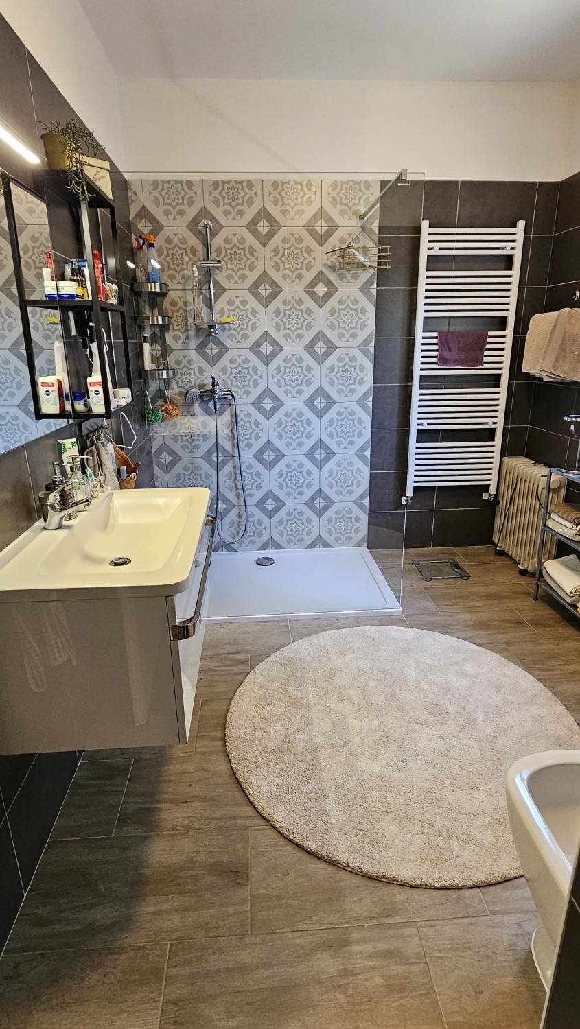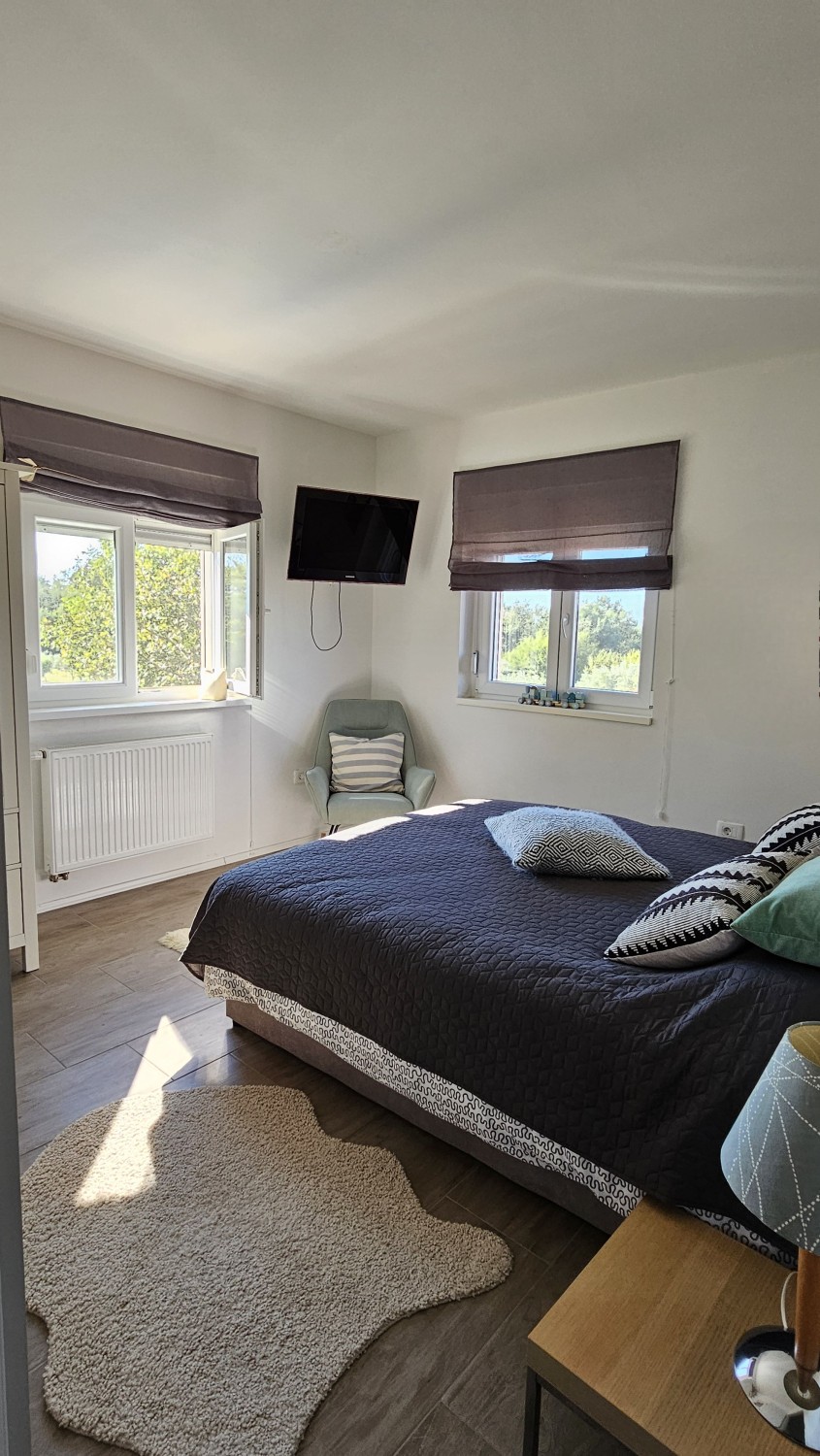 On the ground floor there is another spacious bedroom with a bathroom, as well as a storage room and a laundry room.